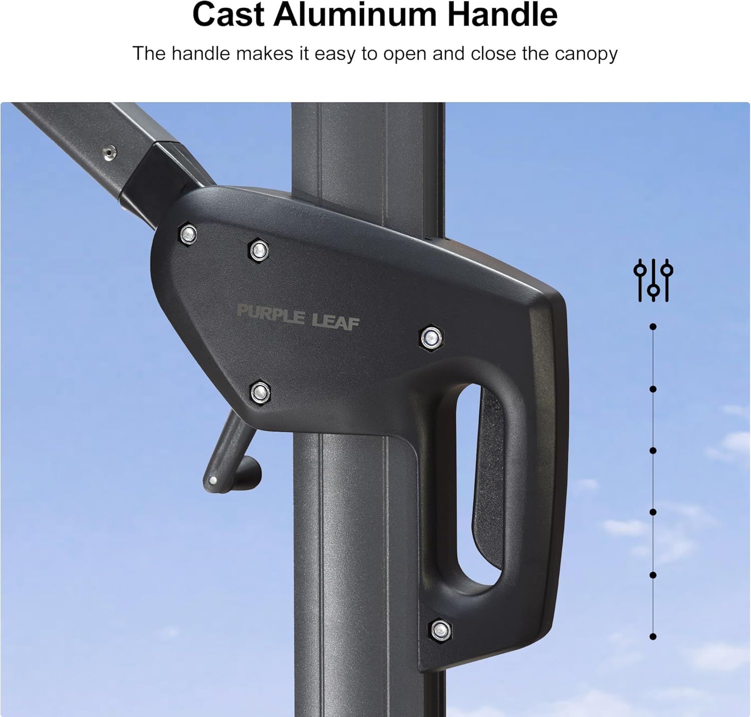 - The crank system of this cantilever umbrella makes it easy to raise and lower the canopy, the unique handle design also makes tilting the umbrella effortless, foot pedal allows for complete 360 degree rotation