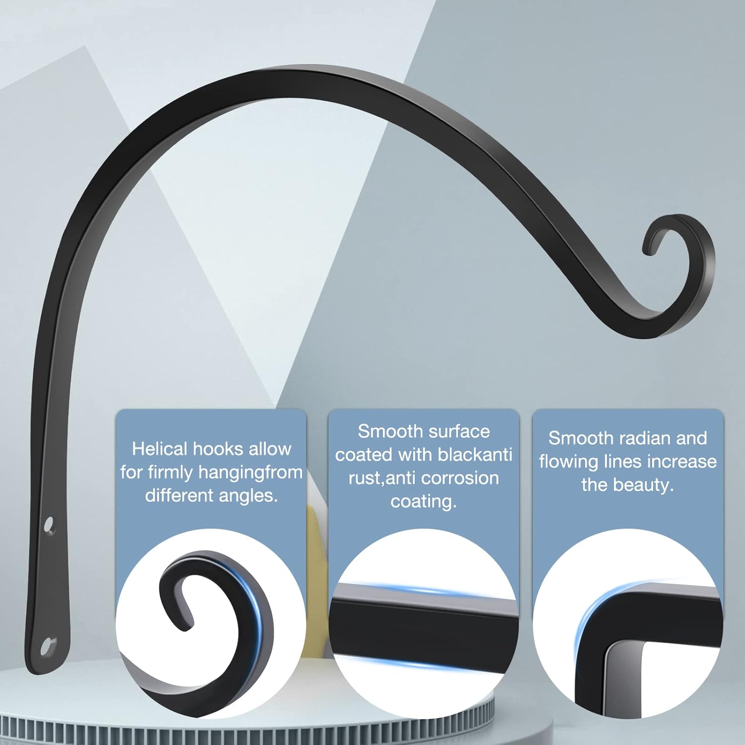 Gtongoko 2 Pack 14 Inch Plant Hangers Outdoor Metal, Plant Hooks for Wall Indoor, Outdoor Hooks for Hanging Bird Feeders, Plant Bracket, Lanterns, Wind Chinme, Black