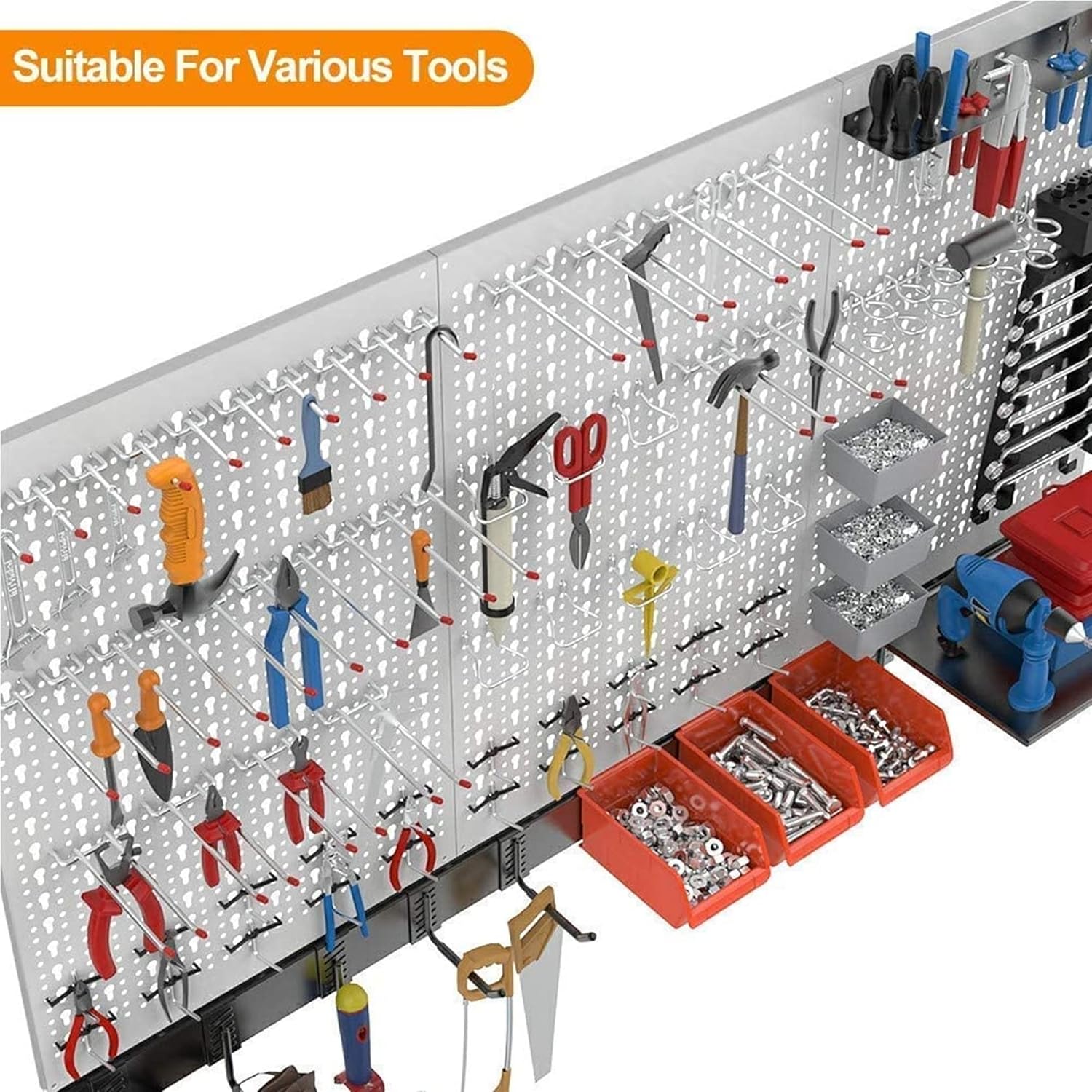 - Fit all out included 1/4in & 1/8in pegboard hooks, bins, and accessories. Extensive tool storage hooks & accessoreis for wrenches, screwdrivers, drills, and sockets set. 100+ pegboard accessories to meet your daily storage needs