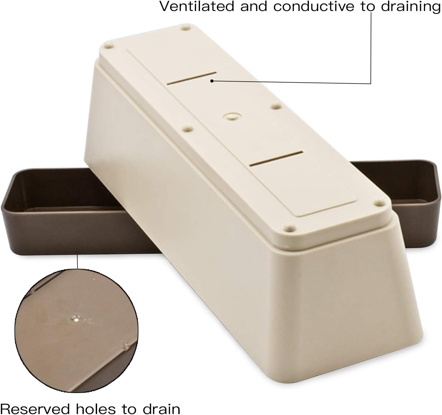 - Drainage Holes & Detachable Saucers- The plastic planter have 2 opened drainage holes and 2 reserved holes to keep excess water and soil drained, and providing proper airflow to keep plant breathe easily and keep root grow healthily. The detachable saucer helps to collect excess water and soil spillage. This window planter box is easy to clean