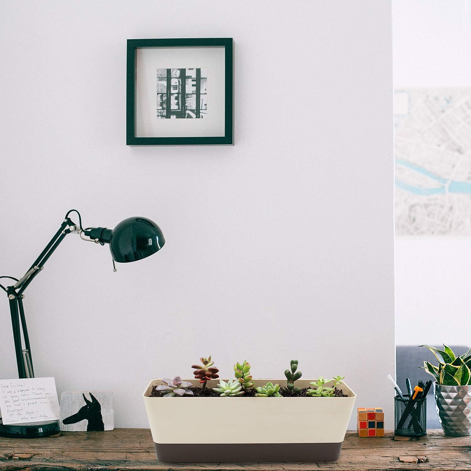 - Lightweight, Simple and Decorative- Each rectangle planter measures 12 x 3.8 x 3.3", and the saucer measures approx. 11.2 x 3 x 1.2". These window flower boxes are perfect for planting vegetables, succulents, cactus, herbs, flowers and more. Beige color can match any home decor perfectly, these succulent planters are great for placing at indoors and outdoors