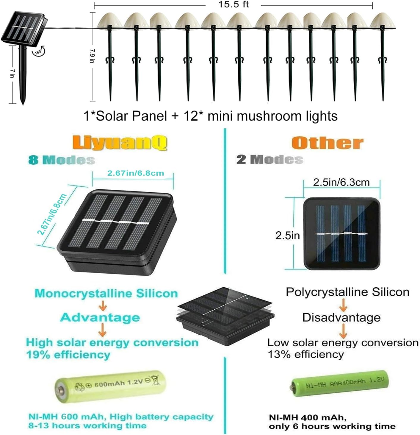- 【Solar Garden Lights Outdoor】The solar mushroom pathway lights are charging by solar panel. Only need to place the solar panel in the full sunlight when it need to charge. At the first time, it will take 2-3 days to get full charging during sunny days. These mushroom light automatically charge during the day and automatically glow at night.