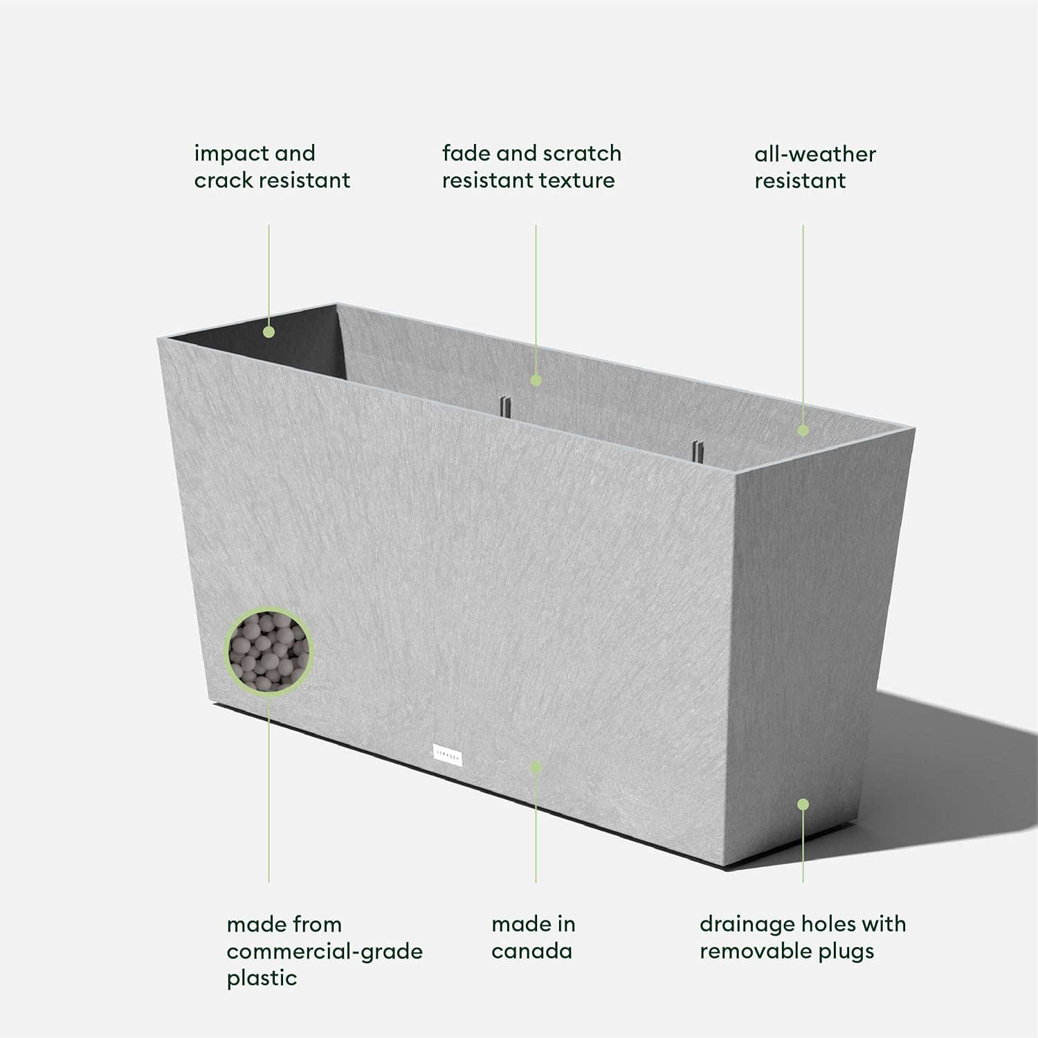- PROUDLY MADE IN CANADA - Designed and made in Canada, so you can rest assured that your Veradek rectangular planters will be of the highest quality and last all year round