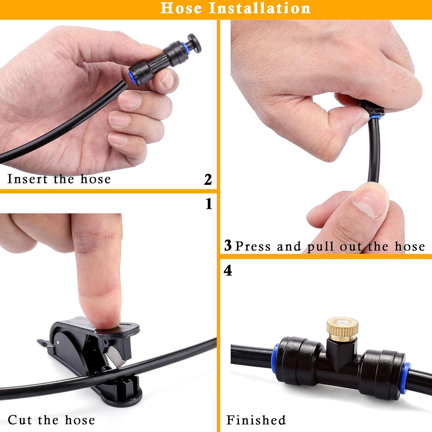 - 【With Pump Use & Without Pump Use】: These misting cooling system can be connected to water hose and use directly without pump. But if the water pressure is not enough and no water spraying out, pleas use the pump (the filter must be used with the pump) to improve water pressure. Please operate according to the instruction manual, and connect the pump to the water hose according to the marks on the outlet and inlet of the pump.