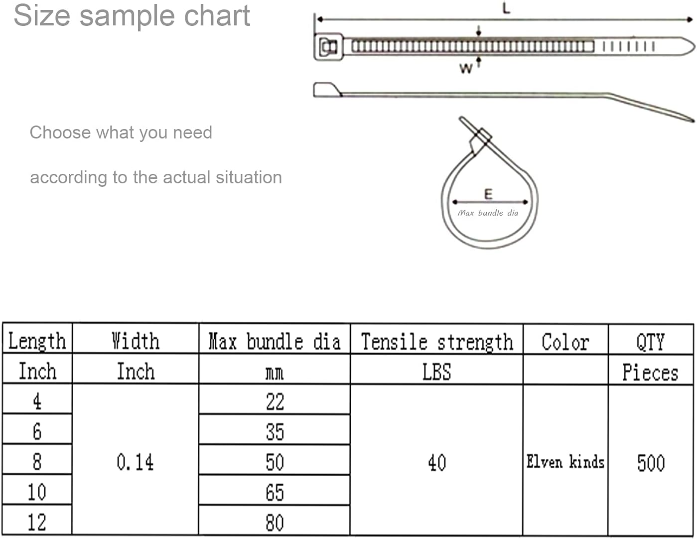 - No Smell& No Fade,High grade eco-friendly nylon made,cable ties are pure without smell.Cable ties are 500 pack per order