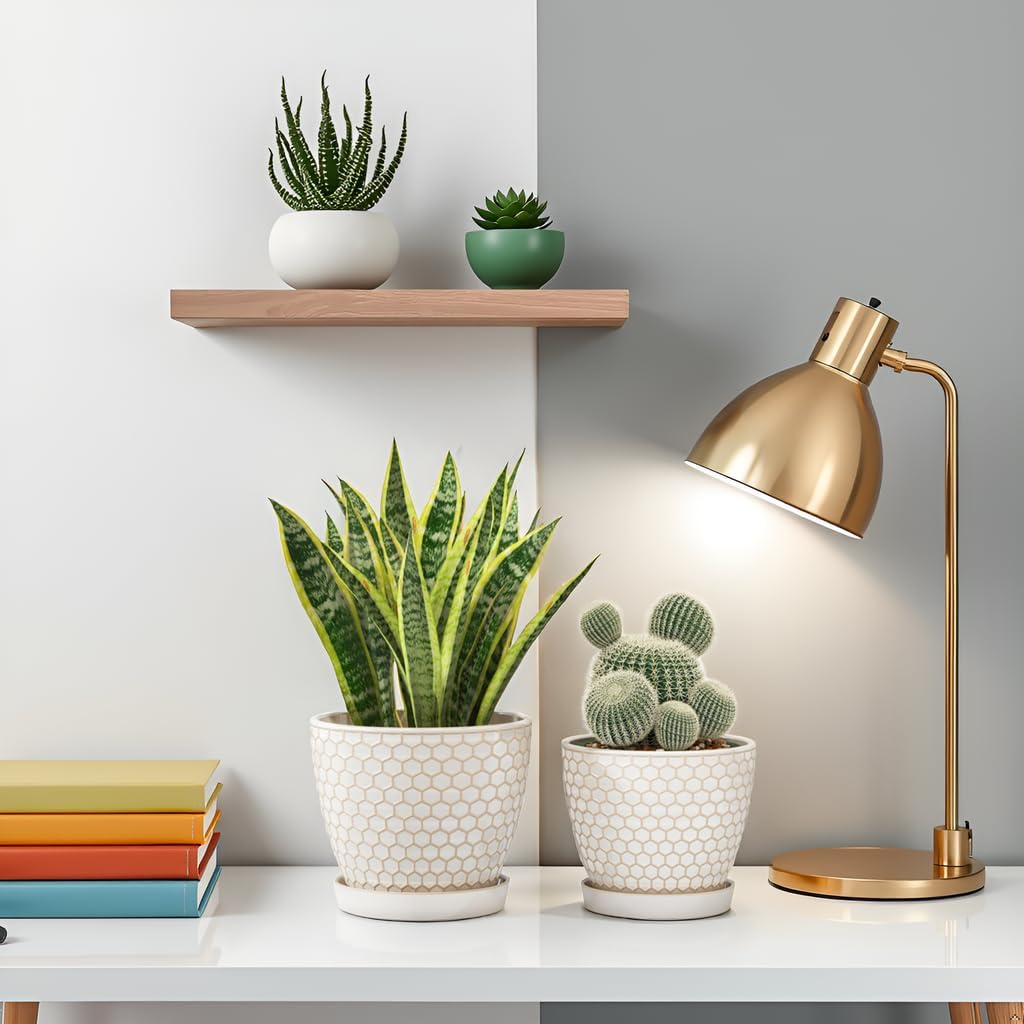 - 【Multi-Style Design】Using environmentally friendly materials, in line with the concept of sustainable development, combined with modern artistic elements, a variety of styles and colors are provided to meet different needs. Choose the ceramic flower pot with honeycomb embossed design, making each plant an art installation in the living room.