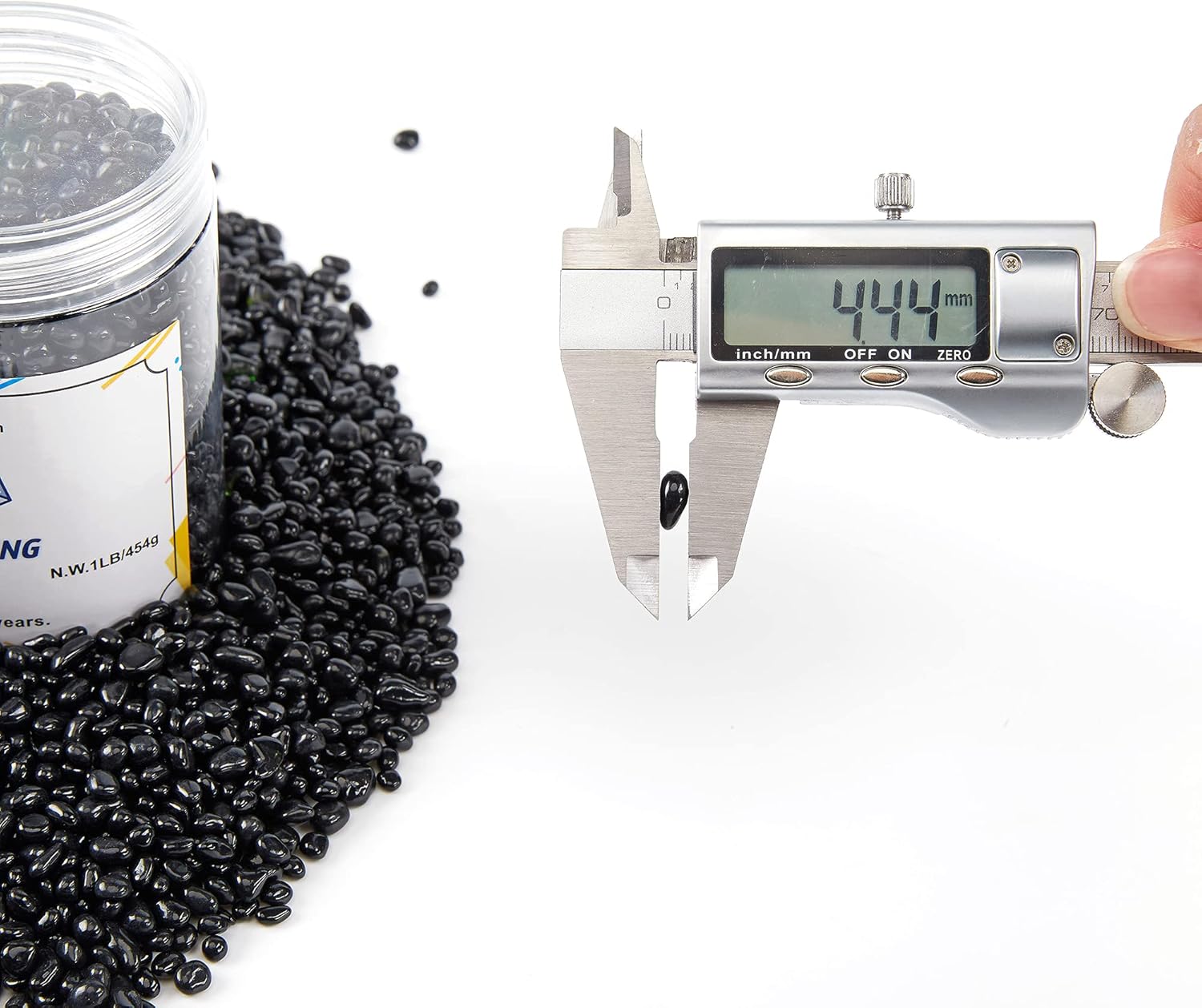 TWINKLING High Luster Round Fire Glass Stones,Glass Marbles Pebbles,Glass Beads Gems for Fire Pit Vase Fillers Crafts Aquarium Garden Decoration,3-6mm,1-Pound Jar (Black)
