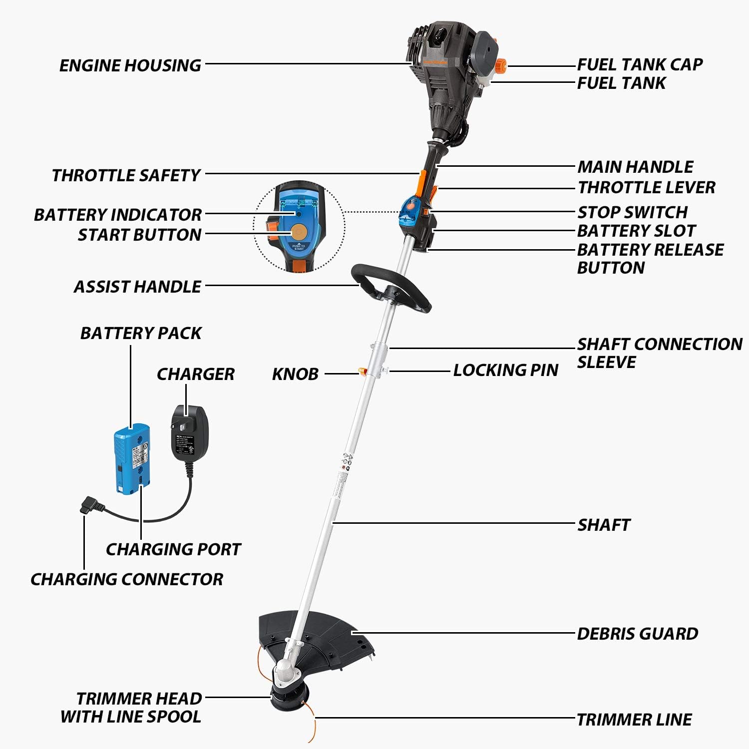 - No-Pull Electric Push Start Button: With up to 150 starts on a single charge. Provides 420 ml fuel tank capacity