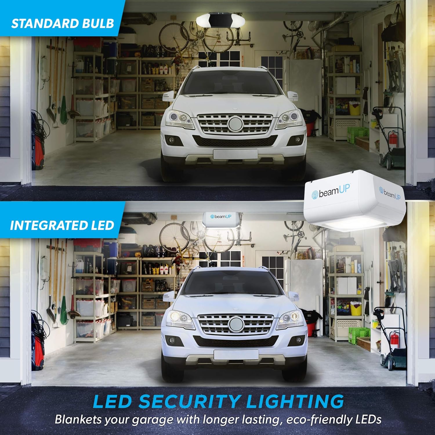 - ADVANCED SAFETY AND SECURITY: This wireless garage door opener has 1500-lumen energy-efficient LED security lighting β never replace a lightbulb! Additionally, the photo eye safety system provides an additional level of safety to help protect your family