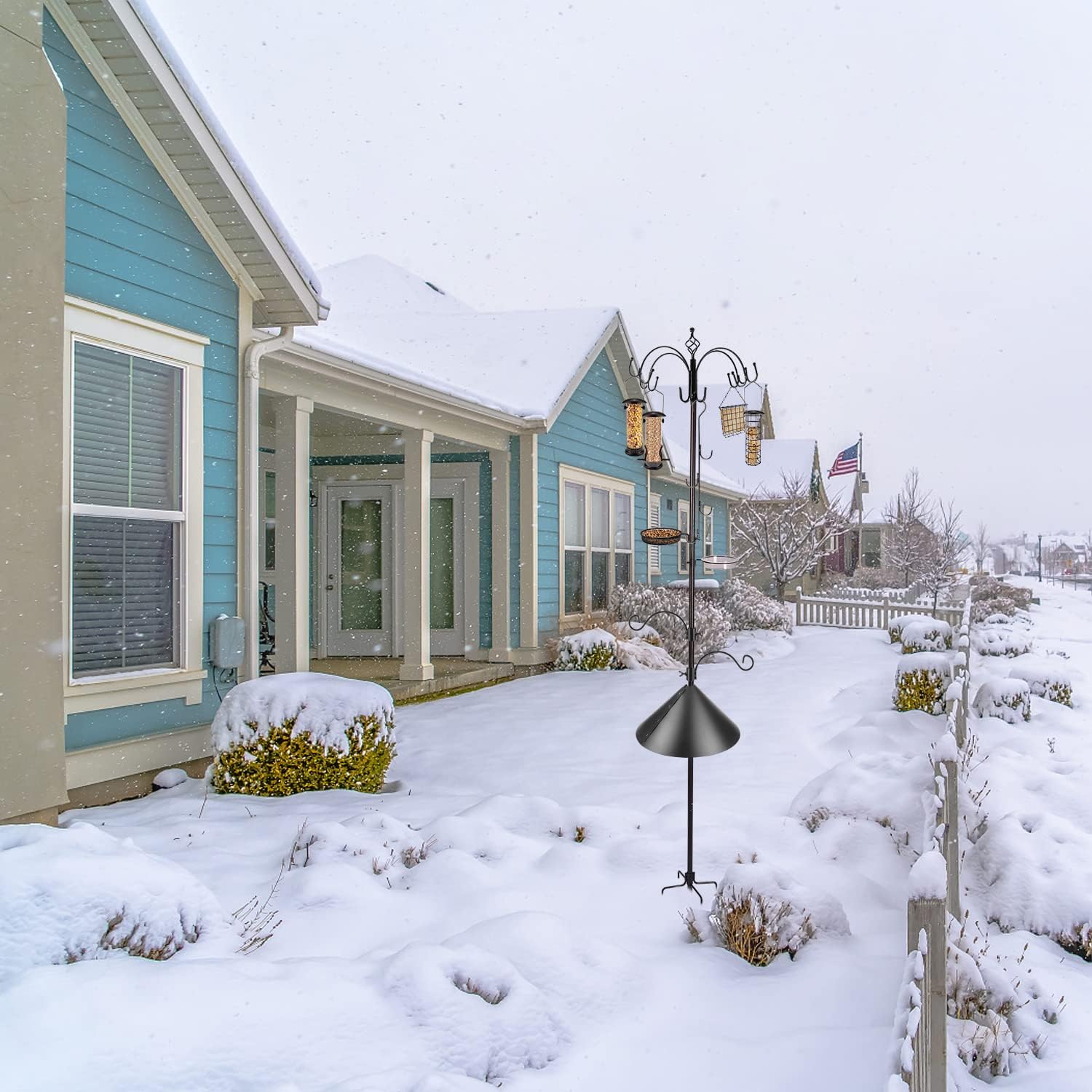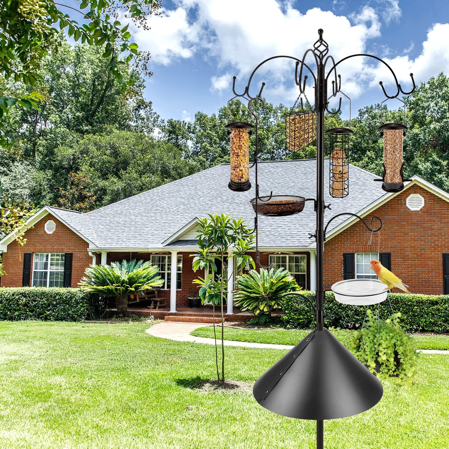 - GREAT GIFT IDEA : Protecting animals and caring for wild birds are selfless actions that we need to do now, for our nature. Standing bird feeders can be placed in our garden or outdoors. Bird feeder station can not only hang bird feeders, but also hang flower baskets, lanterns and other items. Our bird feeder poles can be given as a perfect gift to your loved ones and bring them more happiness.