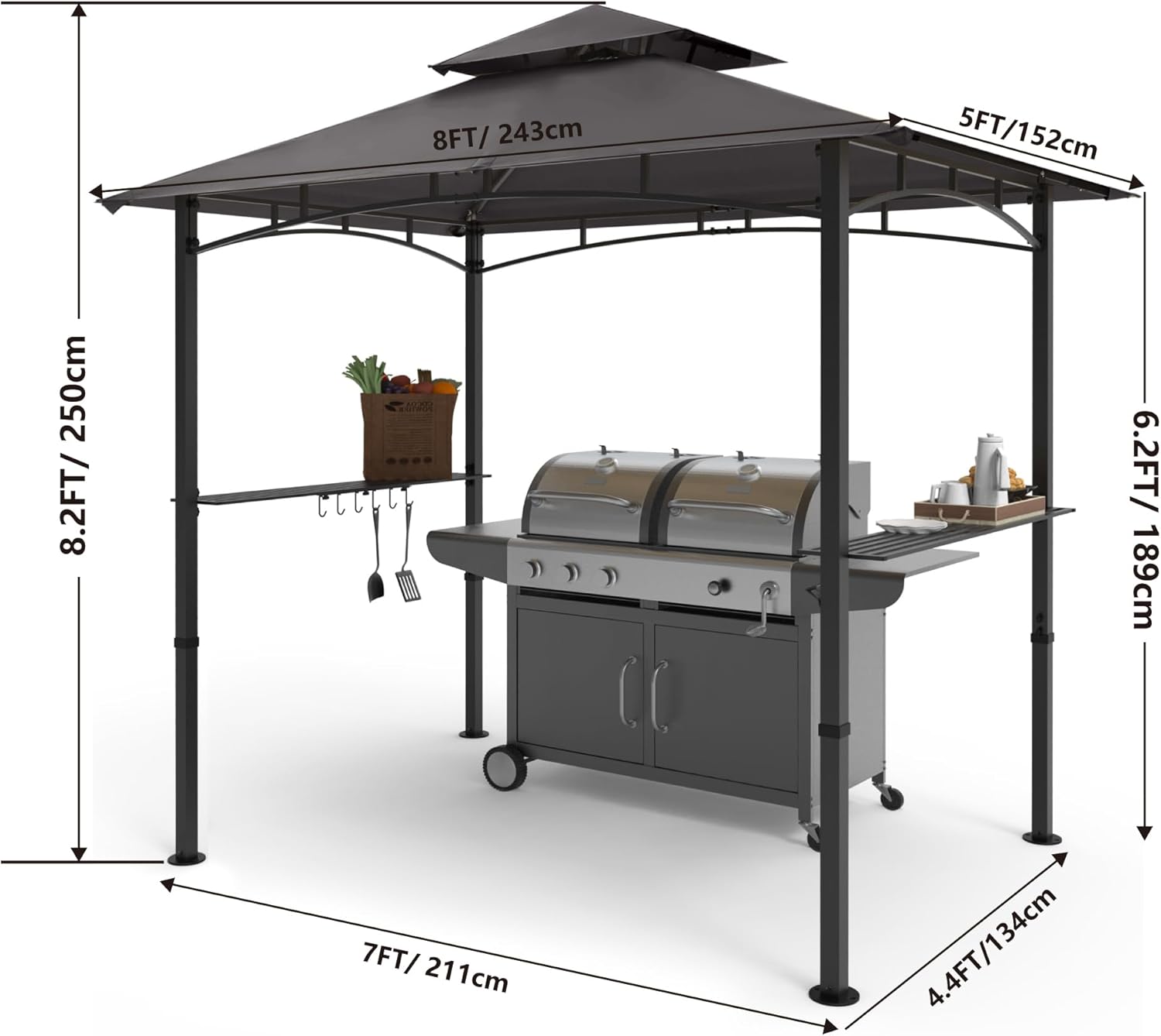 - 【Ideal for Outdoor Grilling】: This grill gazebo creates a perfect spot and patio shade for you to enjoy BBQ party and cooking with 8' x 5' large footprint in the backyard.