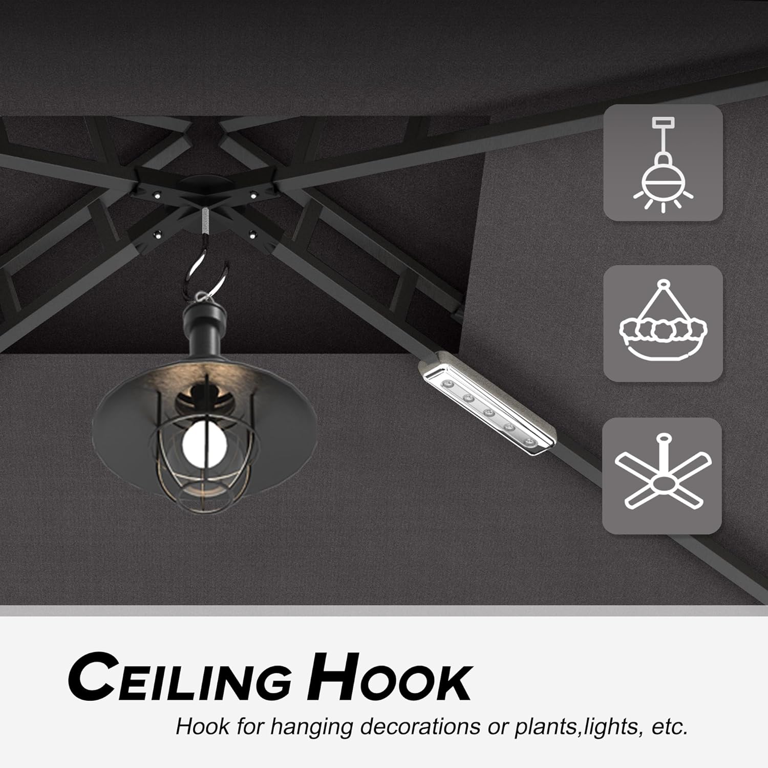 - 【Size and package】: L96.1 x W59 xH96.5in,This grill gazebo package includes 1x Steel frame,1 x Grill gazebo top.Gift: 2 LED Lights.
