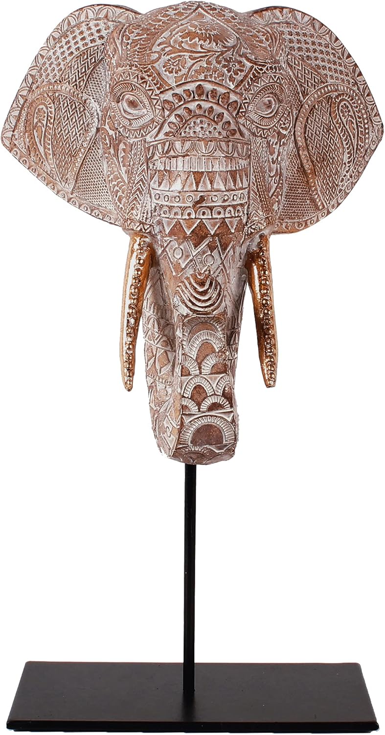 - Add a touch of sophistication to your desktop or mantel with the Zhao Xiang African Elephant Head Resin Sculpture. Crafted from high-quality resin and metal, this exquisite sculpture will make a stunning focal point in any room.