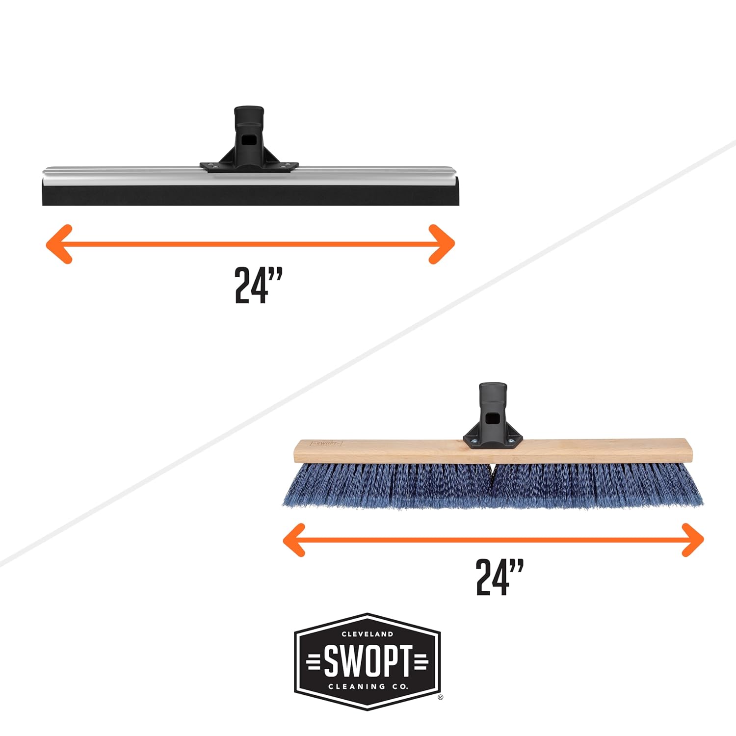 SWOPT 24” Floor Squeegee, 24” Multi-Surface Push Broom + 60" EVA Foam Comfort Grip Wooden Handle, Combo — 2 Cleaning Heads with Long Handle Interchangeable with SWOPT Cleaning Heads