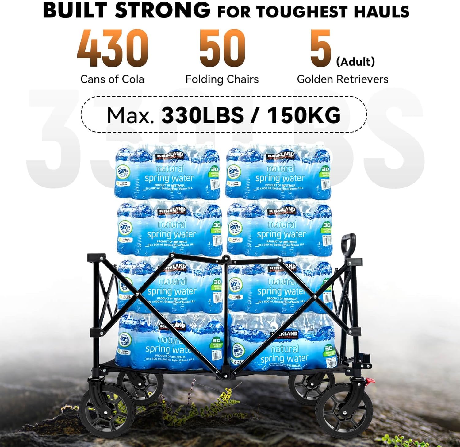 - ๐ ๐๐ ๐๐๐๐๐๐๐๐ ๐๐๐๐๐๐๐๐๐: A must-have for your daily use and outdoor adventures โ Our space-saving stainless steel all terrain wagon with surprisingly large volume helps simplify the transport of heavy loads through lightly pulling, indispensable for e.g. loads of groceries or to campsites, laundry or supermarket.