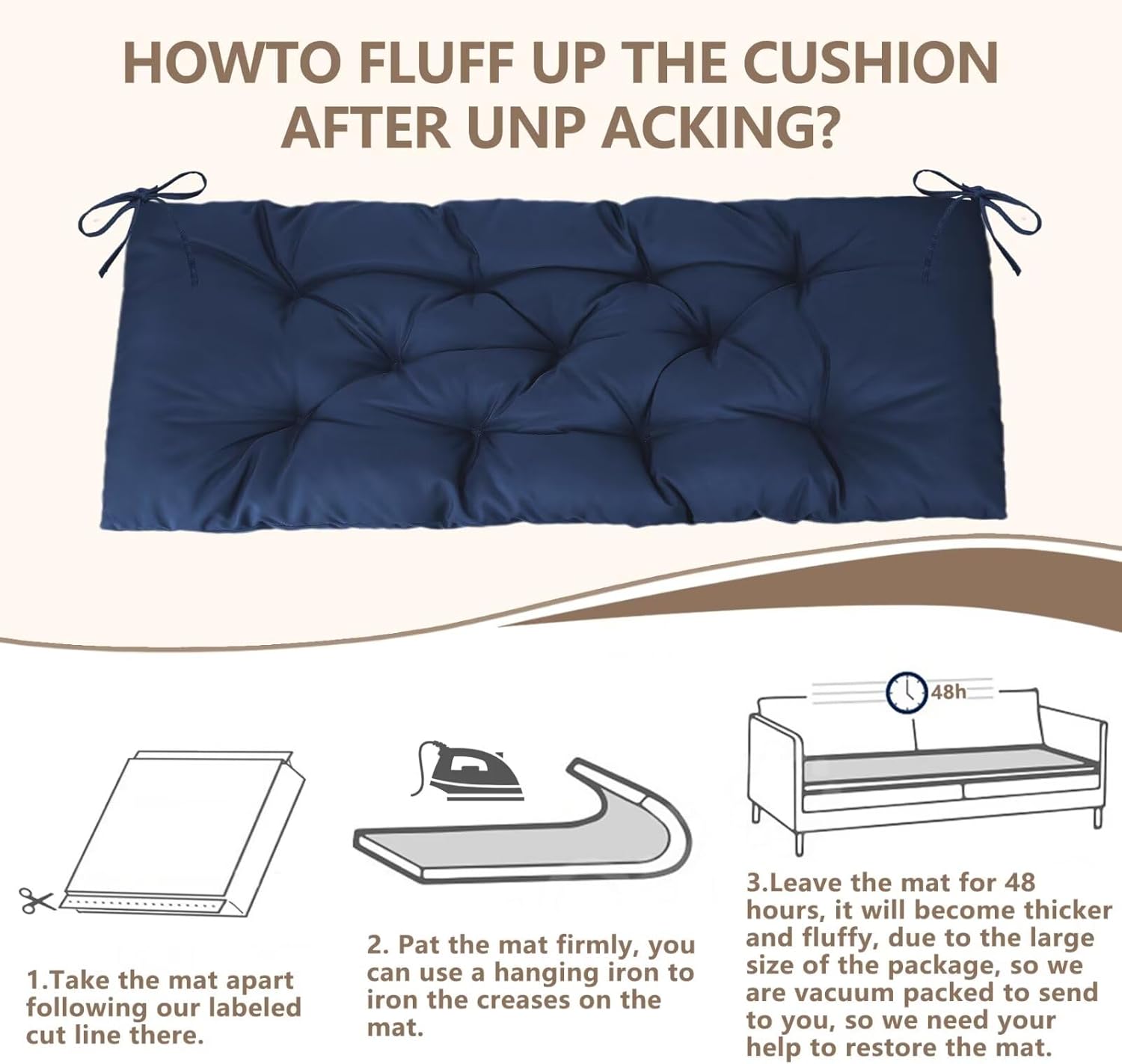 59 inch Waterproof Indoor/Outdoor Garden Bench Seat Cushions,Thicken Patio Bench Soft Rocking Chairs Pad Lounger Seat for Porch Wicker Loveseat Settee (59x19.6x3.9 inch,Navy