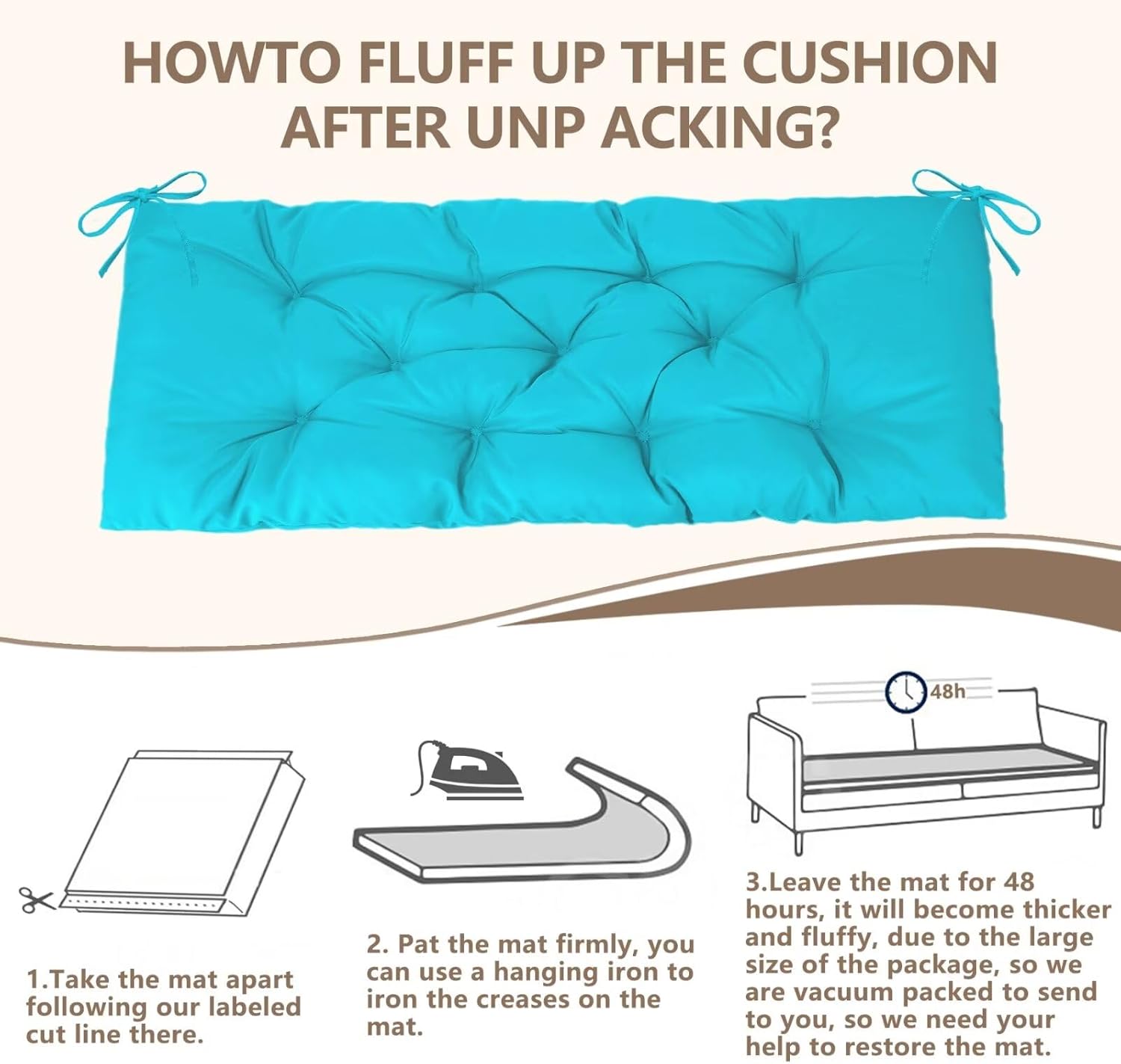 - ✨✨✨ Designed by right size:Turquoise Bench Loveseat Settee Can be Used as seat or back. Cushion (LxWxH):59x19.6x3.9 Inch