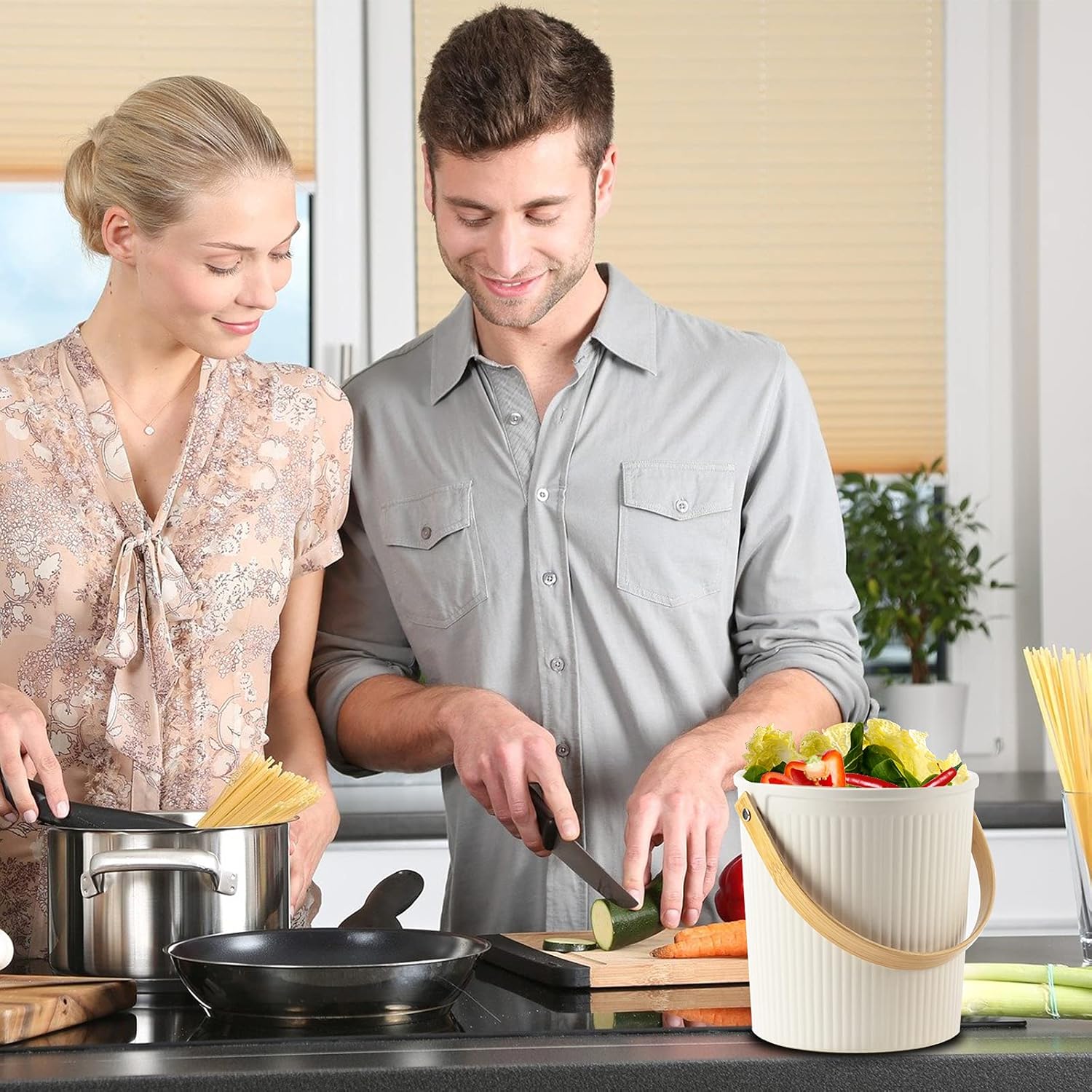 - Practical: Store your food scraps, vegetable peelings, tea leaves, flowers, coffee grounds and other compost materials with this compost bucket. Never waste your food scraps again and create your own low carbon rich compost for your garden.