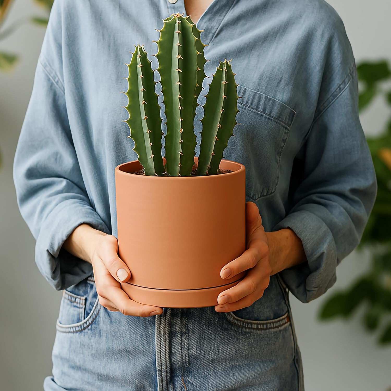 - Drain Hole and Saucer: Planter pots with drainage holes and detachable/perfectly fitting terracotta saucers included. Plants not included.