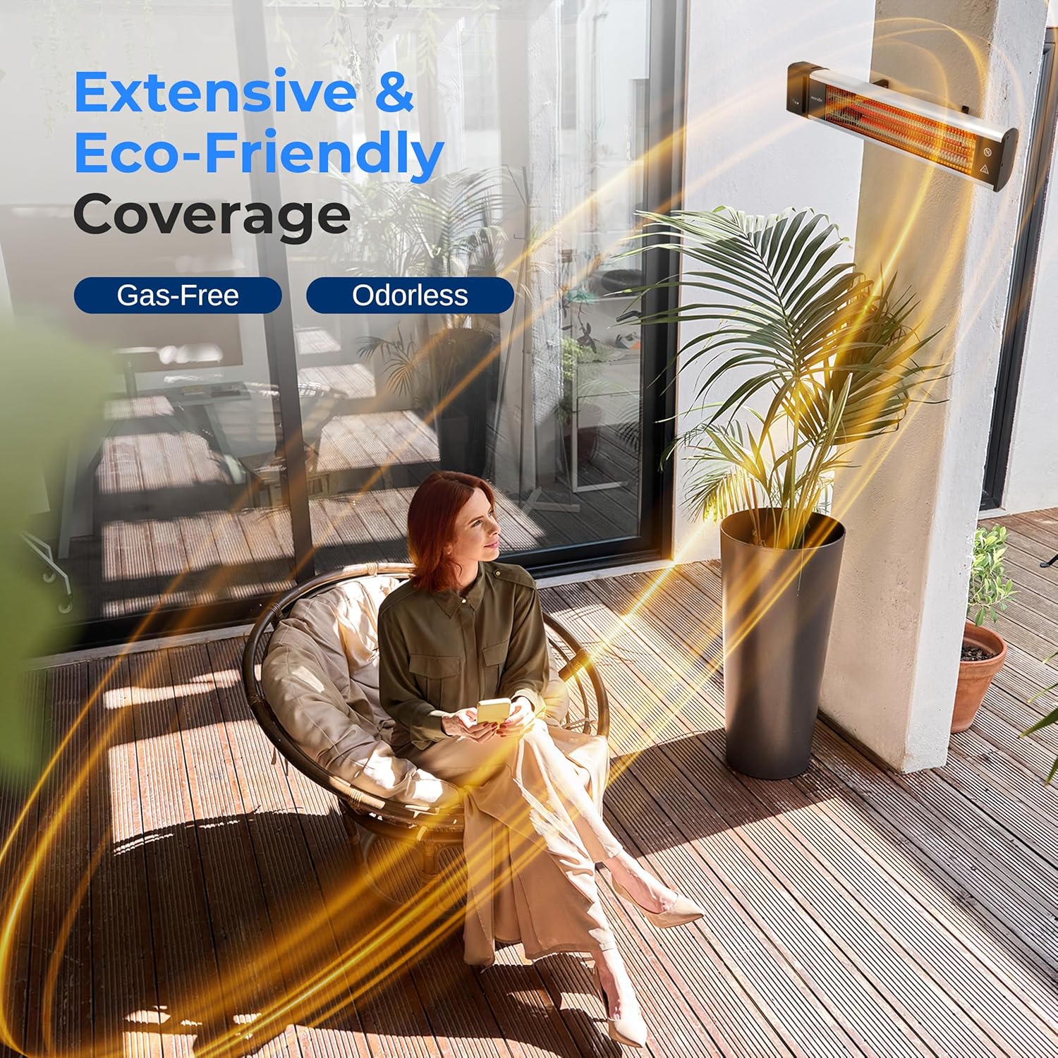 - INSTANT WARMTH: Relax on cool days with our patio heaters for outdoor use, delivering sun-like, odorless heat in secondsโno gas or propane needed. Two heat levels and a remote control ensure immediate, convenient comfort.