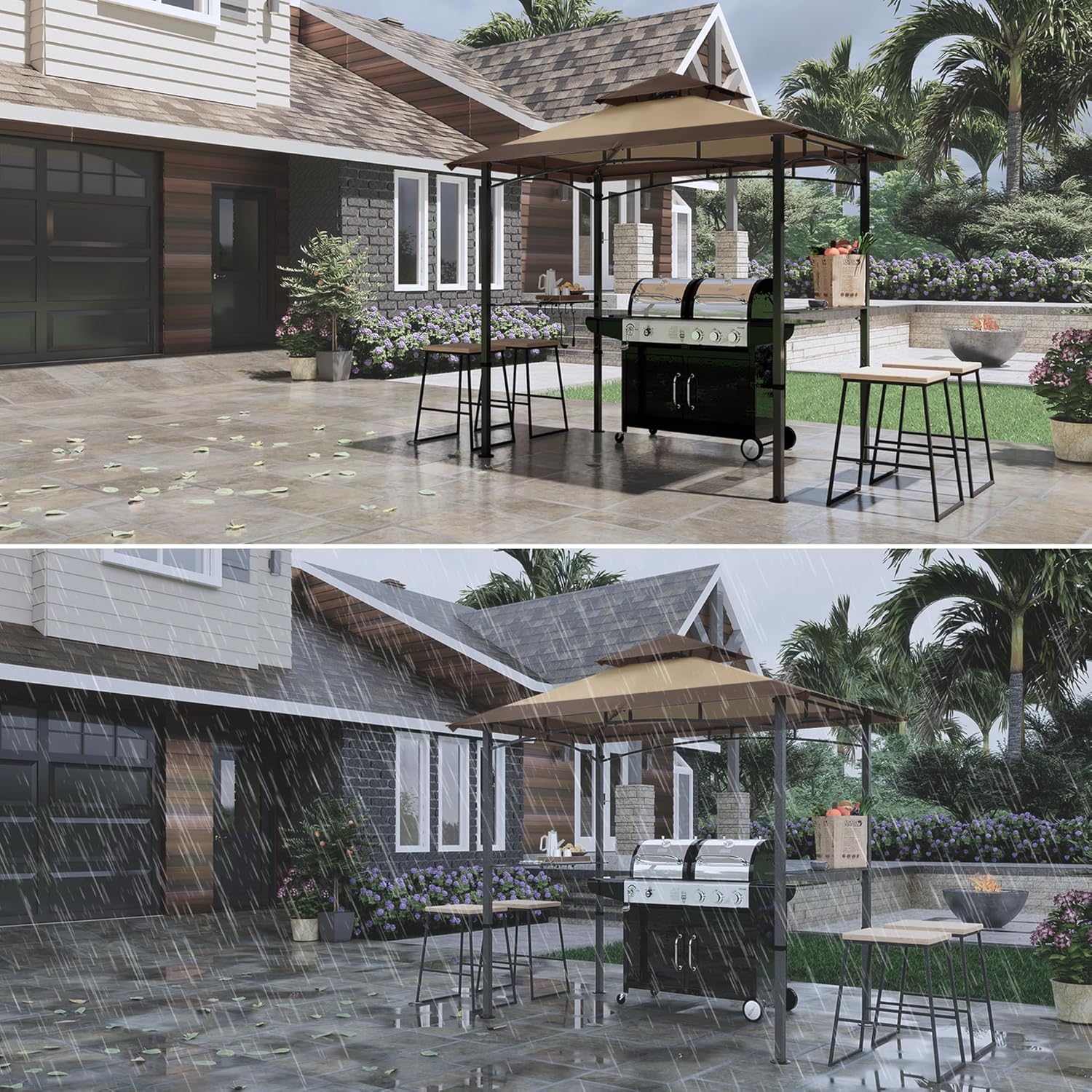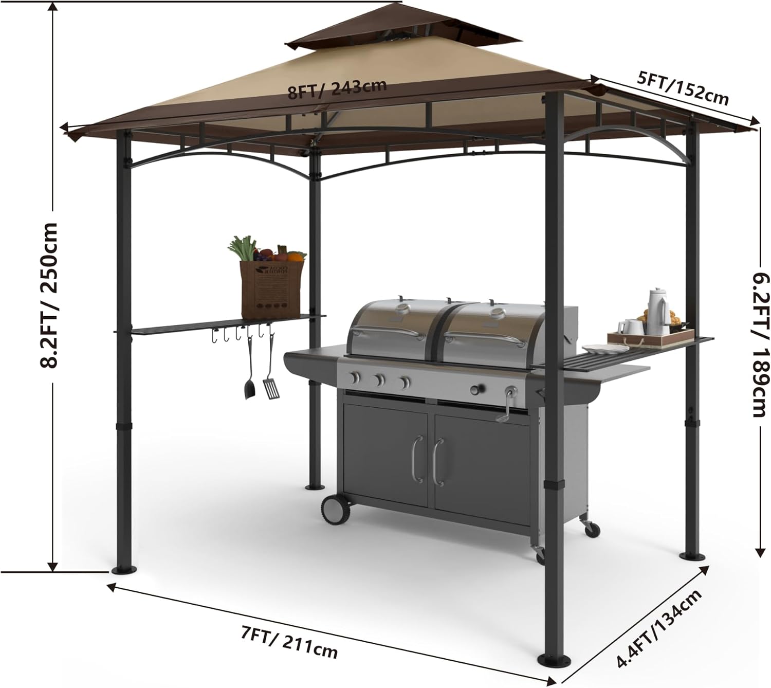 - 【Ideal for Outdoor Grilling】: This grill gazebo creates a perfect spot and patio shade for you to enjoy BBQ party and cooking with 8' x 5' large footprint in the backyard.
