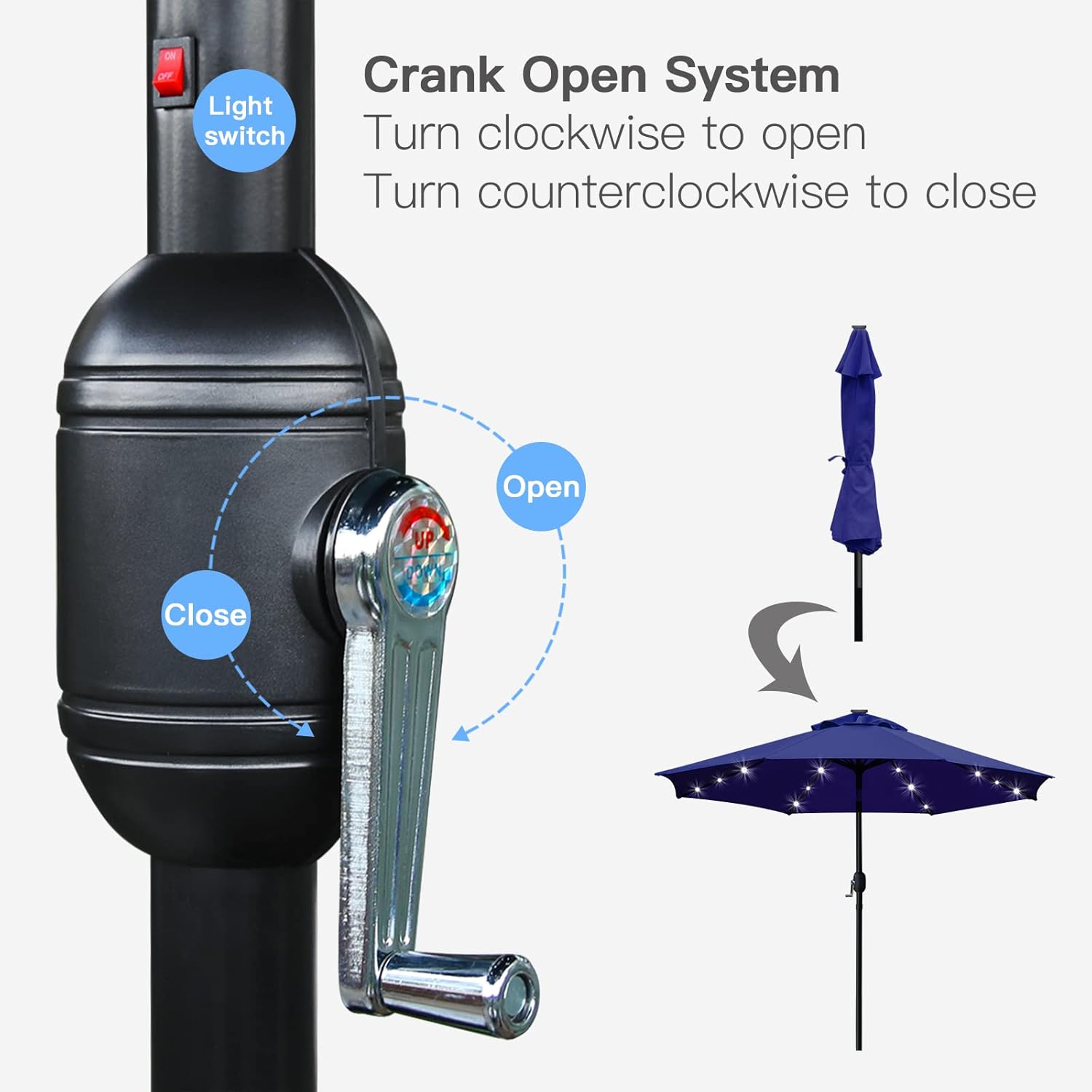 Sunnyglade 9' Solar LED Lighted Patio Umbrella with 8 Ribs/Tilt Adjustment and Crank Lift System (Navy Blue)