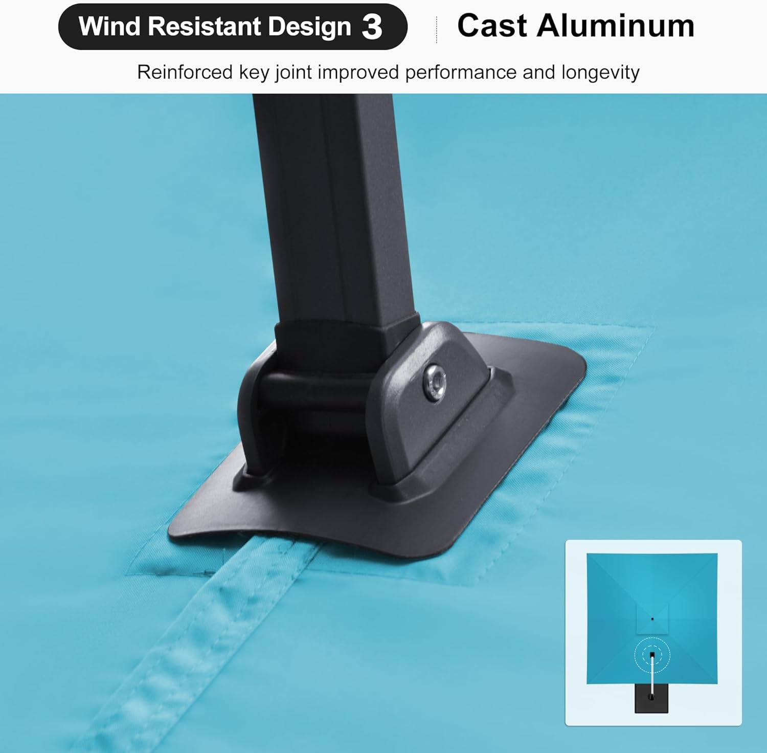 PURPLE LEAF 11FT Cantilever Outdoor Umbrellas Large Patio Umbrella Hanging Double Top Square Offset Umbrella with 360°Rotation Tilting Umbrella Outdoor Patio, Turquoise Blue