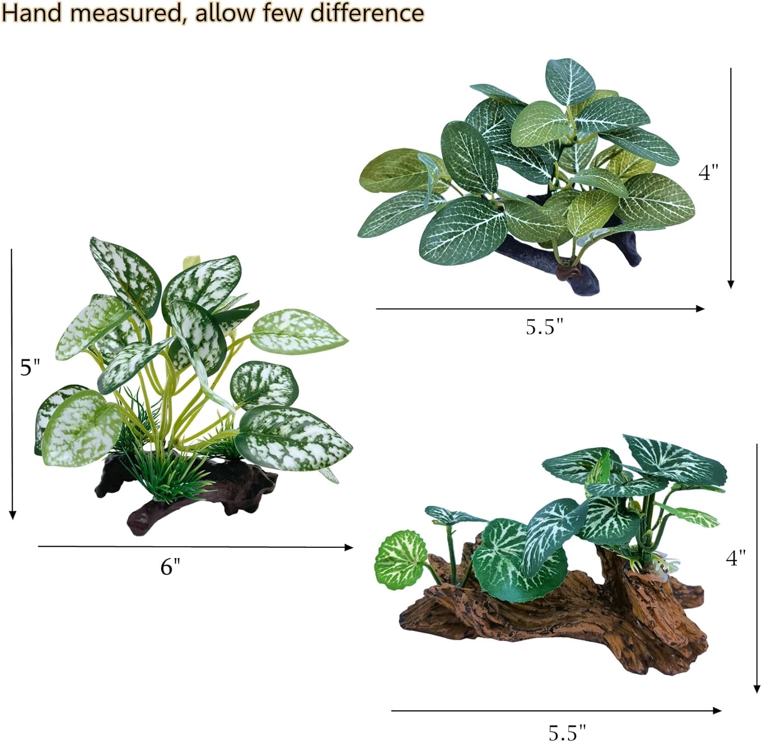 - Material: plastic stems and silk/plastic leaves, ceramic base shaped of tree trunk or rock, plants measured about 5"-6"