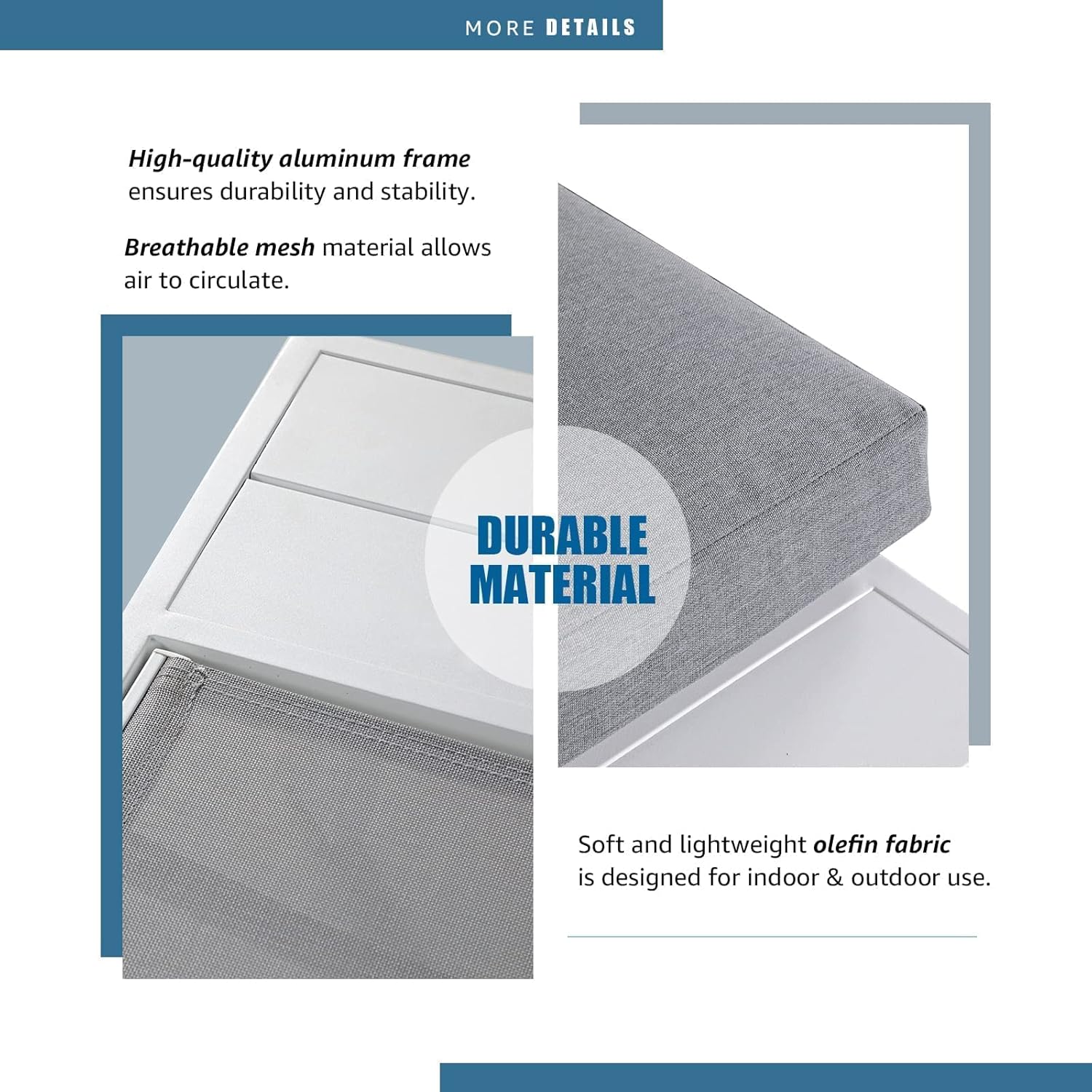 - DURABLE FRAME - Built with rust-resistant and long-lasting aluminum, creating a lightweight yet stable frame structure. Patio seating constructs of sling mesh material, making the outdoor sectional set flexible and supportive, encouraging air flow to keep your body cool on a hot day.