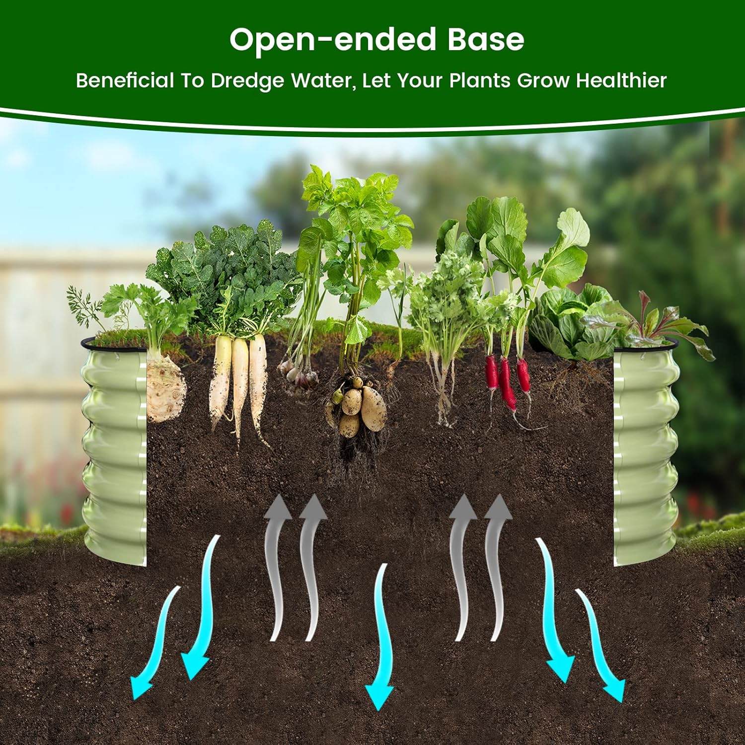 - Stronger Roots & Less Bending - Compared to most metal beds with 12" and 15" long, the Olle raised garden pot offers 17" long that allows better drainage and root growth. Perfect for planting root fruits and vegetables such as watermelon, sweet potatoes, zucchini, and more. 43cm long design requires less bending and protects plants from rabbits, pets and animals