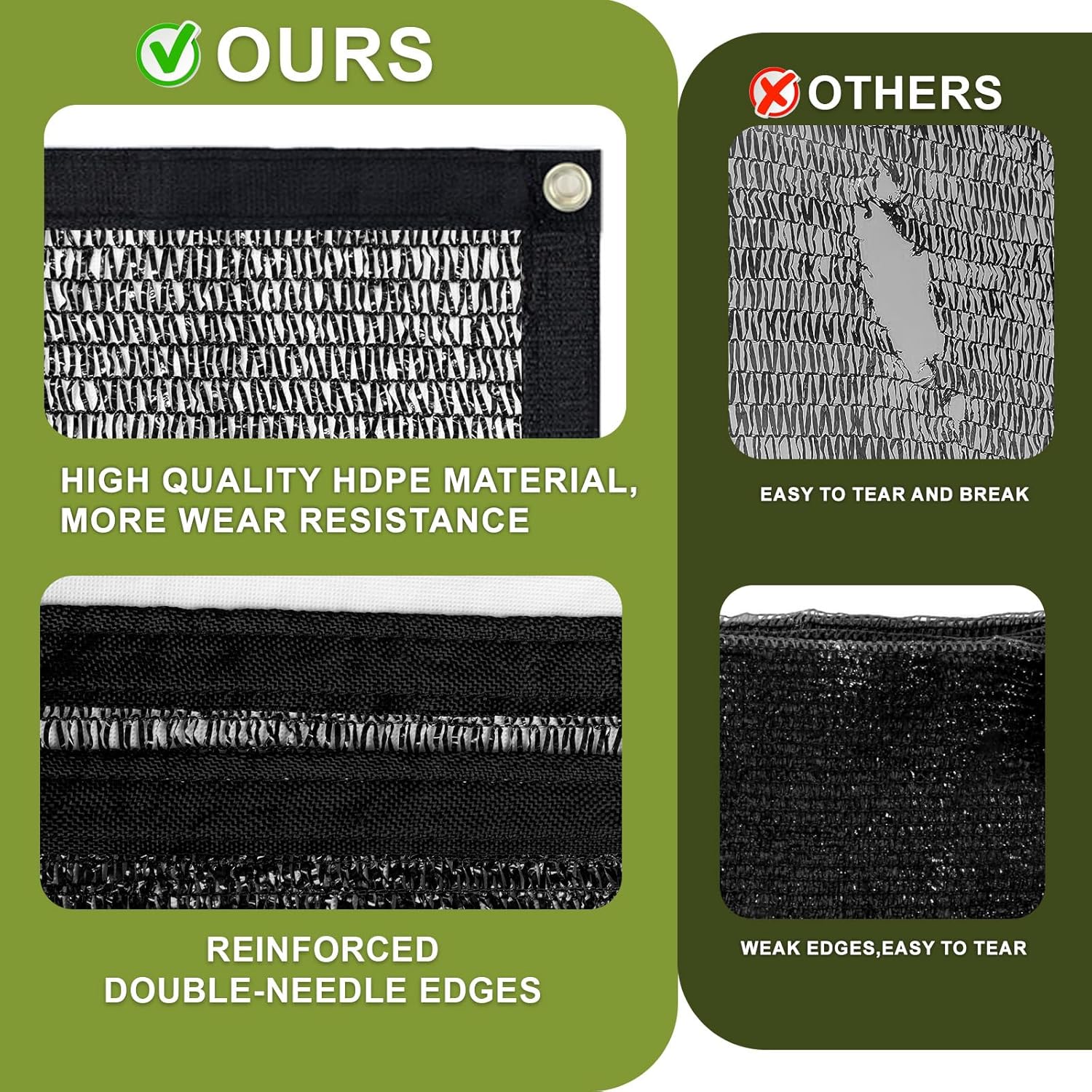 - 【High Quality】Made of 100% high-density polyethylene fabric, this garden shade cloth is excellent for anti-aging and can last for 2-3 years. The mesh is lightweight, durable and breathable, making it a perfect plant cover and summer shading option. Please note that due to the characteristics of this material, there may be a tolerance of ±4 inches from edge to edge