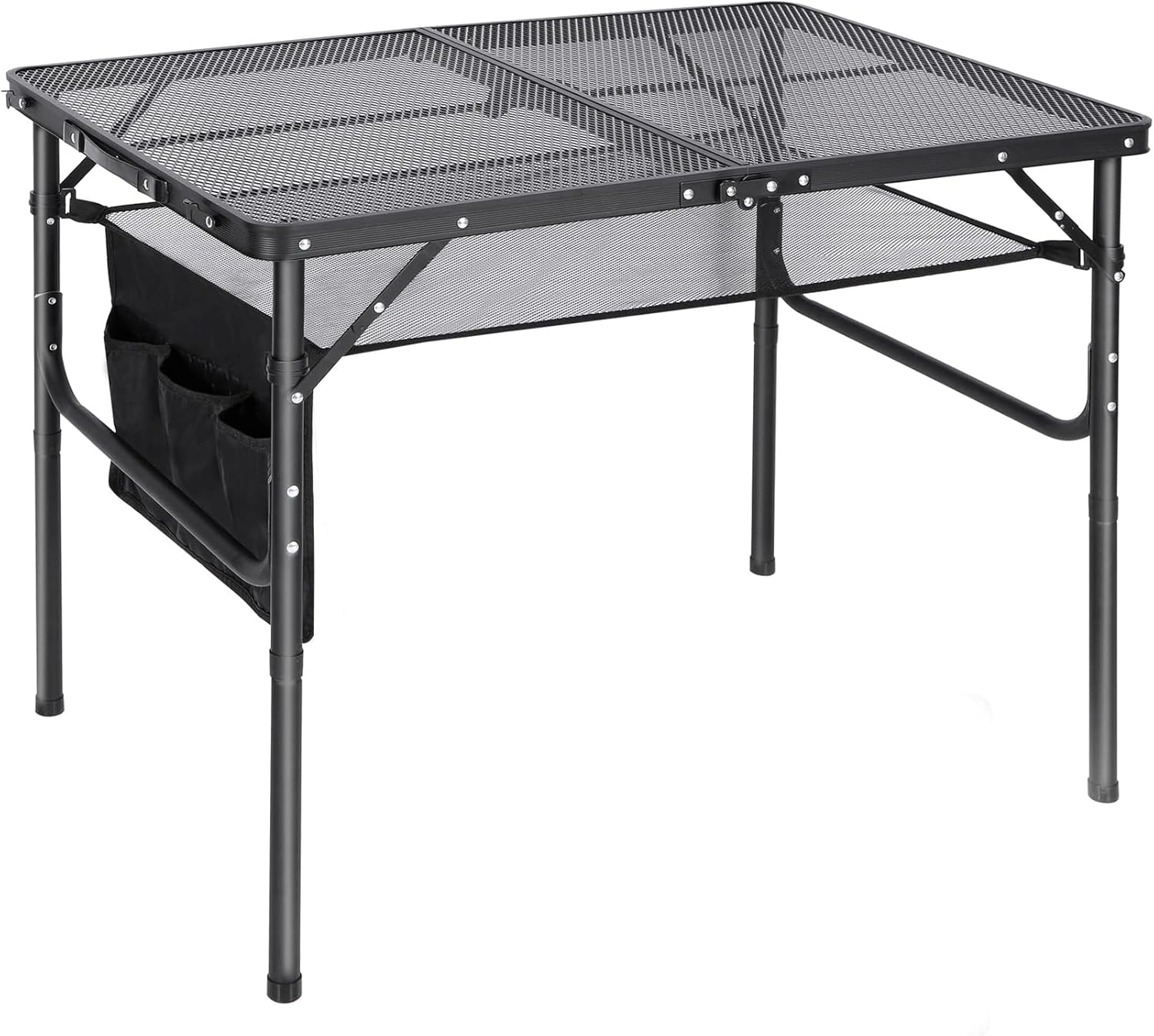 - Multifunction: Finished with premium aluminum alloy frame and thick iron mesh table top, these rectangular and square metal outdoor grill tables for camping are sturdy and stable enough. Water and heat resistant wire desktop can support your oven, grill stand, or other bbq equipment.