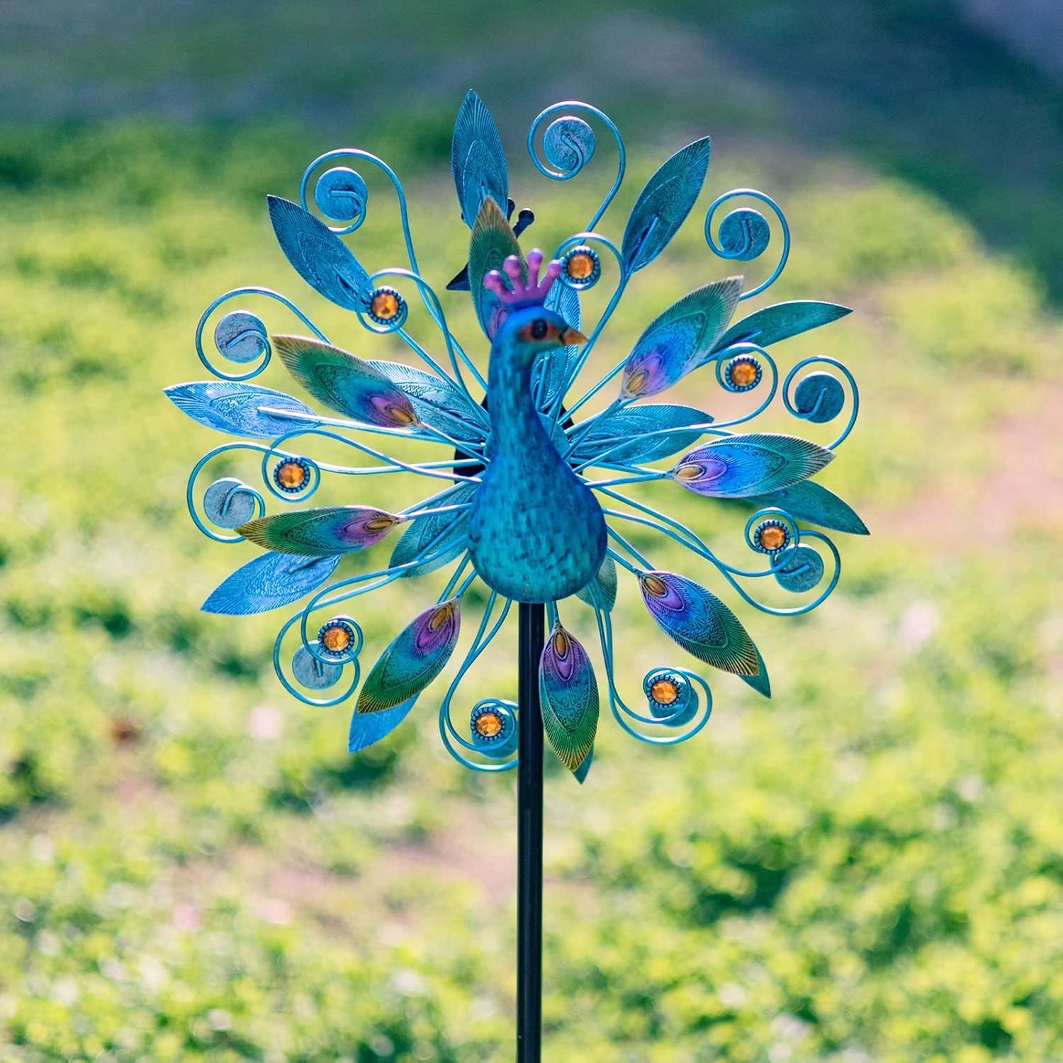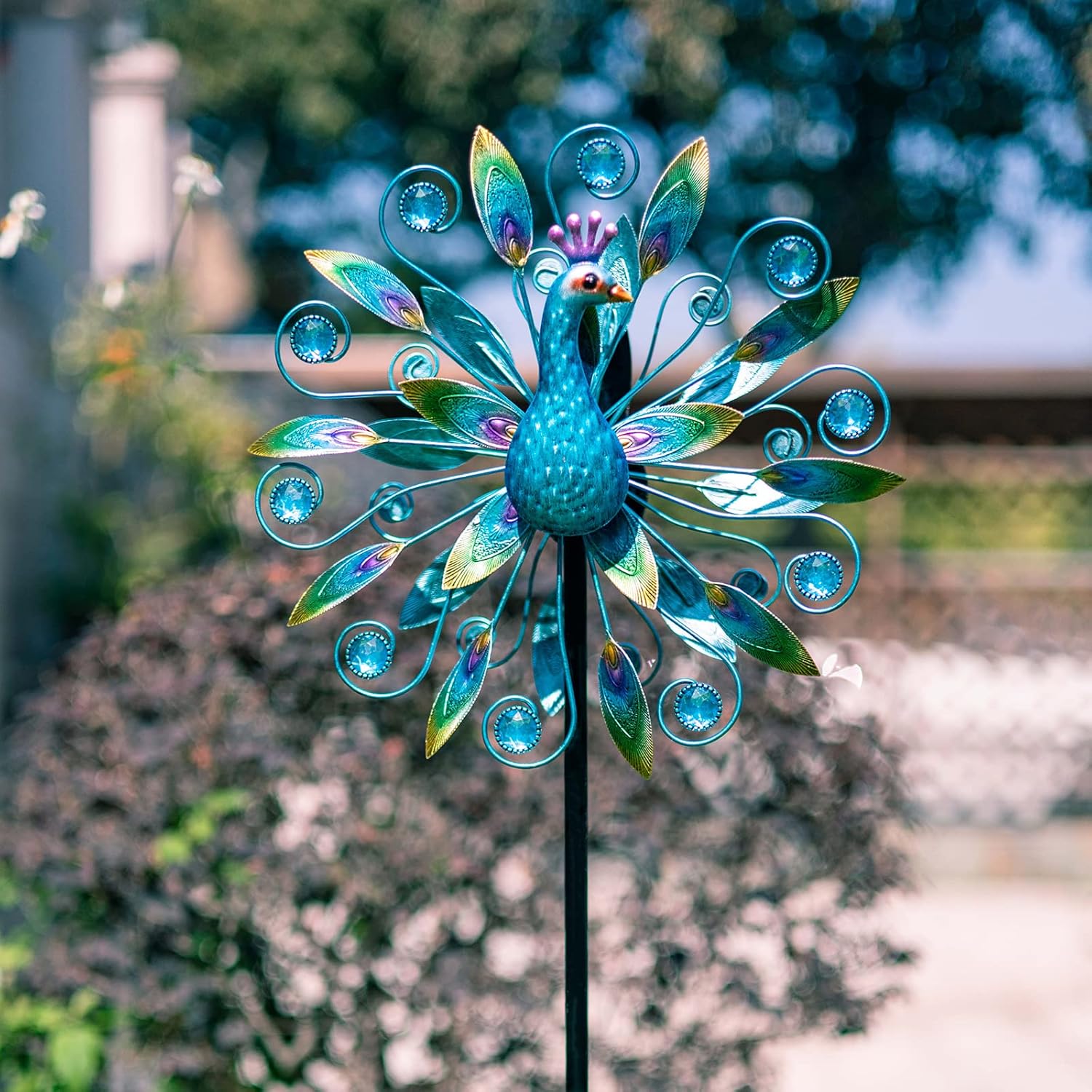- Dual Rotating Blades:Peacock wind spinners having a solid metallic construction with dual direction wind motion,two tiers blades smoothly rotate in opposite directions on sealed bearings.Superb welding technology provides wind spinner with smoothly rotating