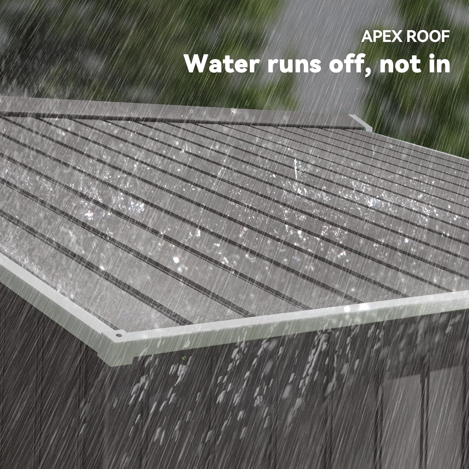 - Sloped Roof Shed: A sloped and striped roof keeps our backyard garden shed from holding on to too much weight during rainfall, preventing possible damage and keeping it intact during all seasons.