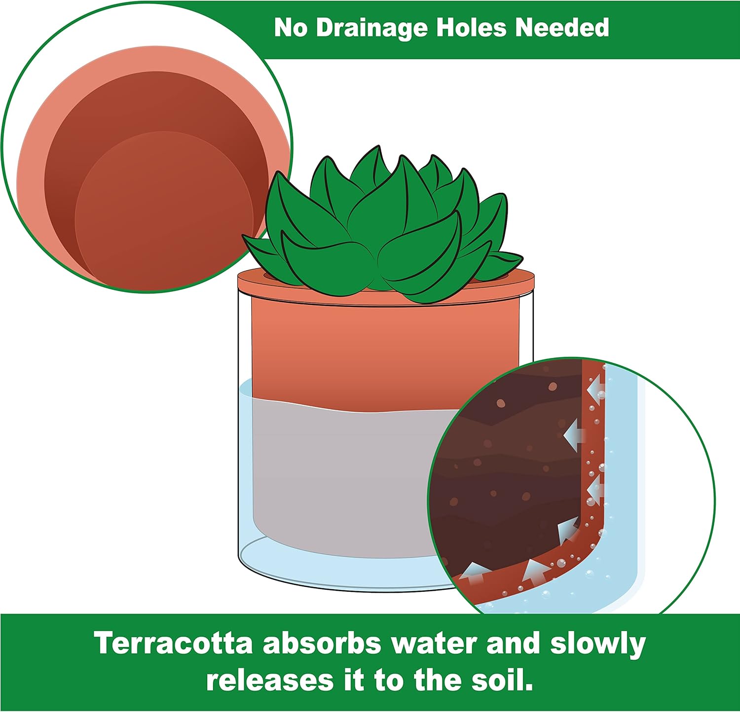 - Self-watering System: The terracotta pot is unglazed, just fill the glass container with water to ensure plants will absorb only what they need through the terracotta pot walls.