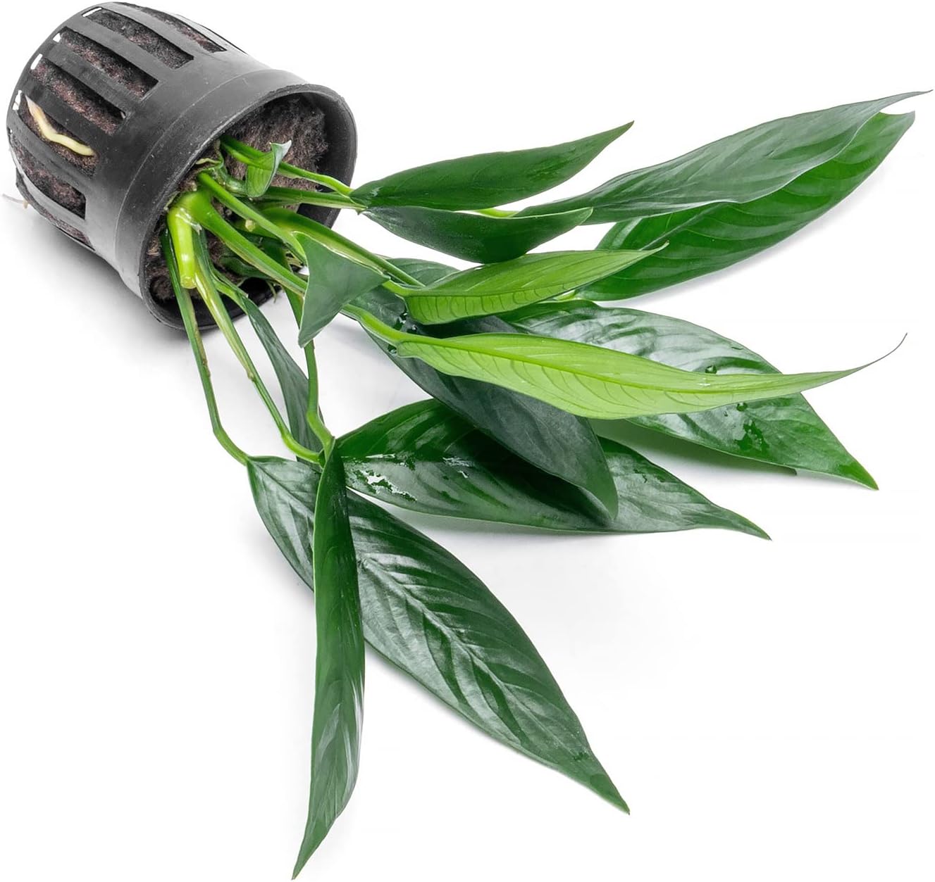 - Ships 5-7β tall rooted in wool which should be removed prior to planting. Gently squeeze the pot, peel back the wool, rinse, and plant! Keep the rhizomes above your substrate or the plant can begin to rot.