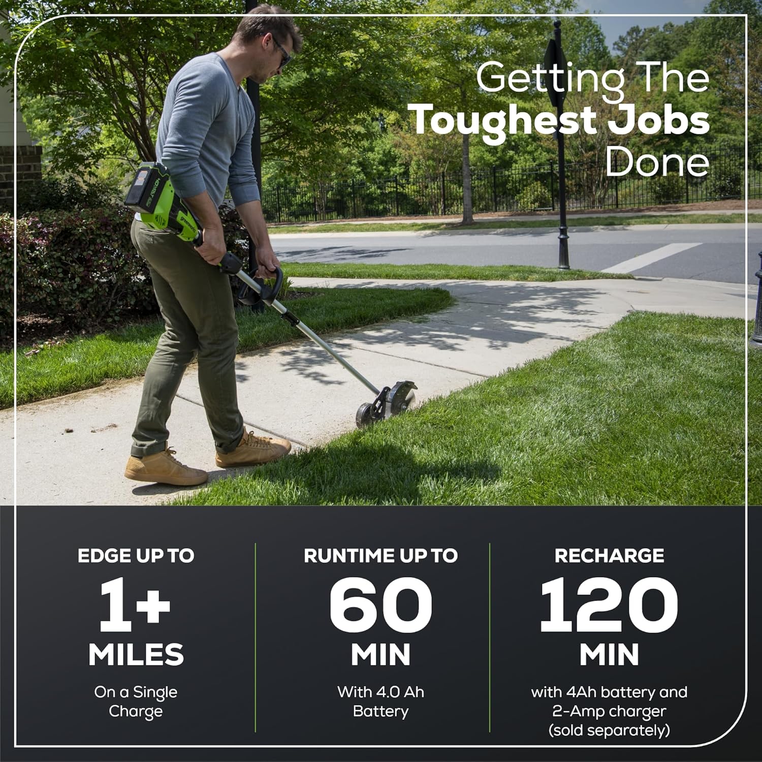 Greenworks 40V 8" Brushless Edger, Battery and Charger Not Included