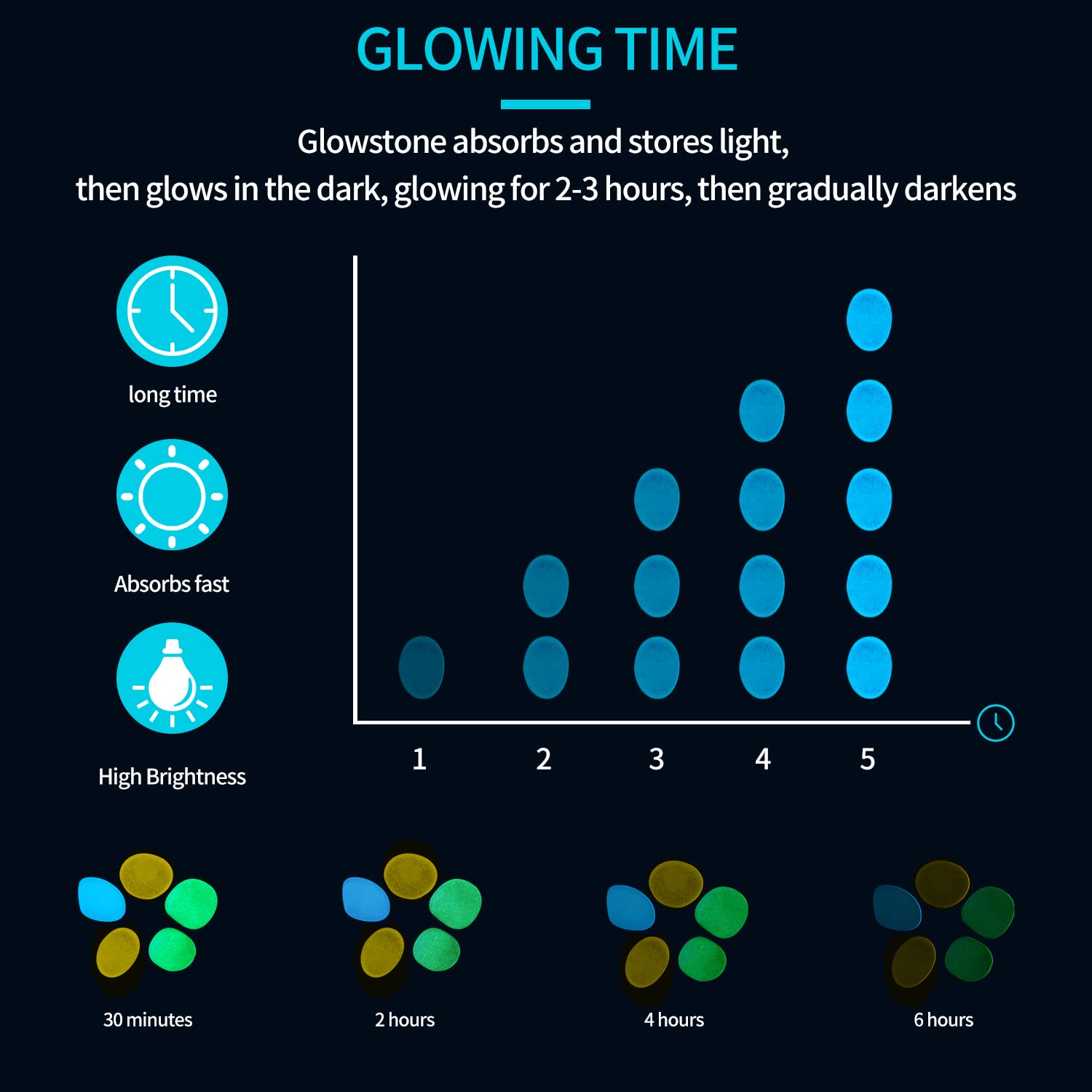 - BETTER GLOWING EFFECT - Whether you want to illuminate a fish tank or illuminate an outdoor courtyard, these pebbles can ensure the glow you want, bringing your ample light.