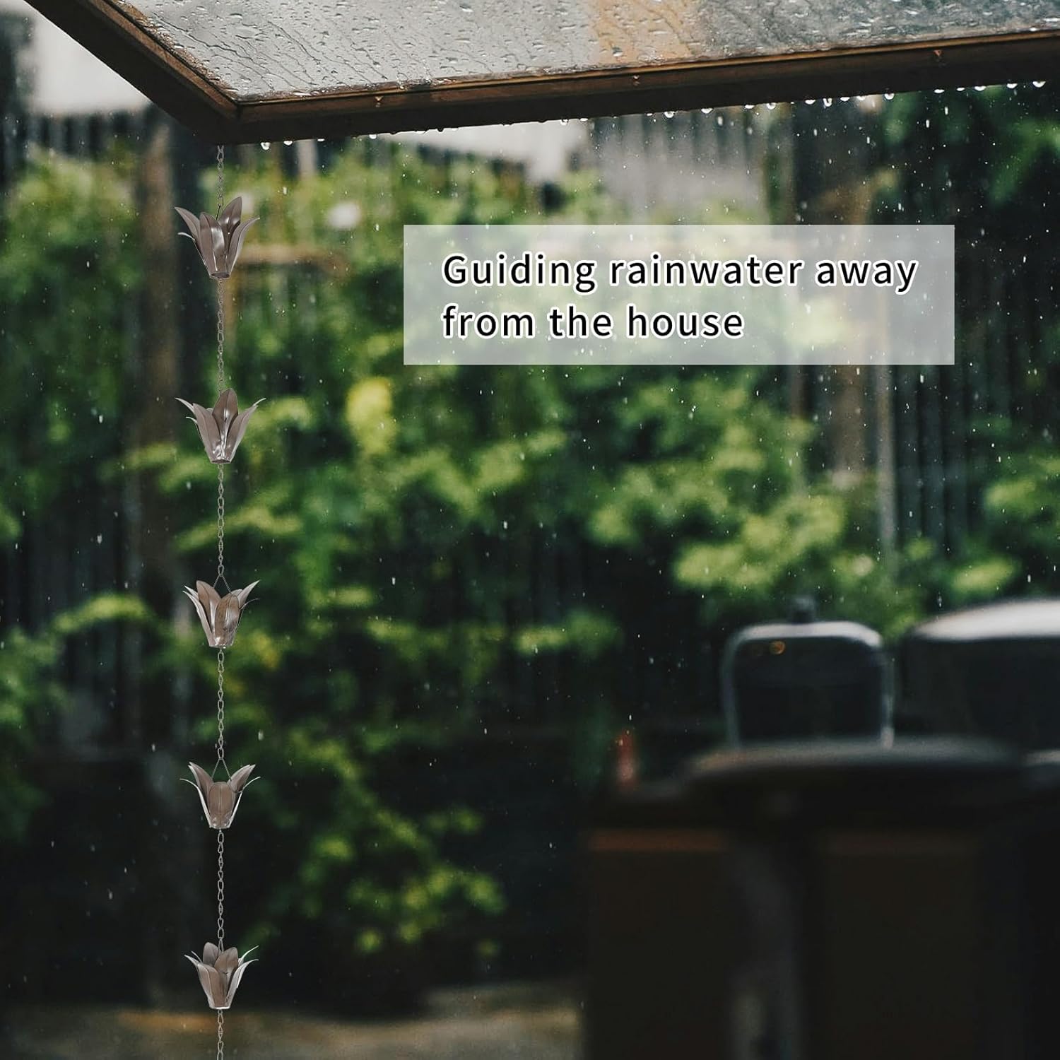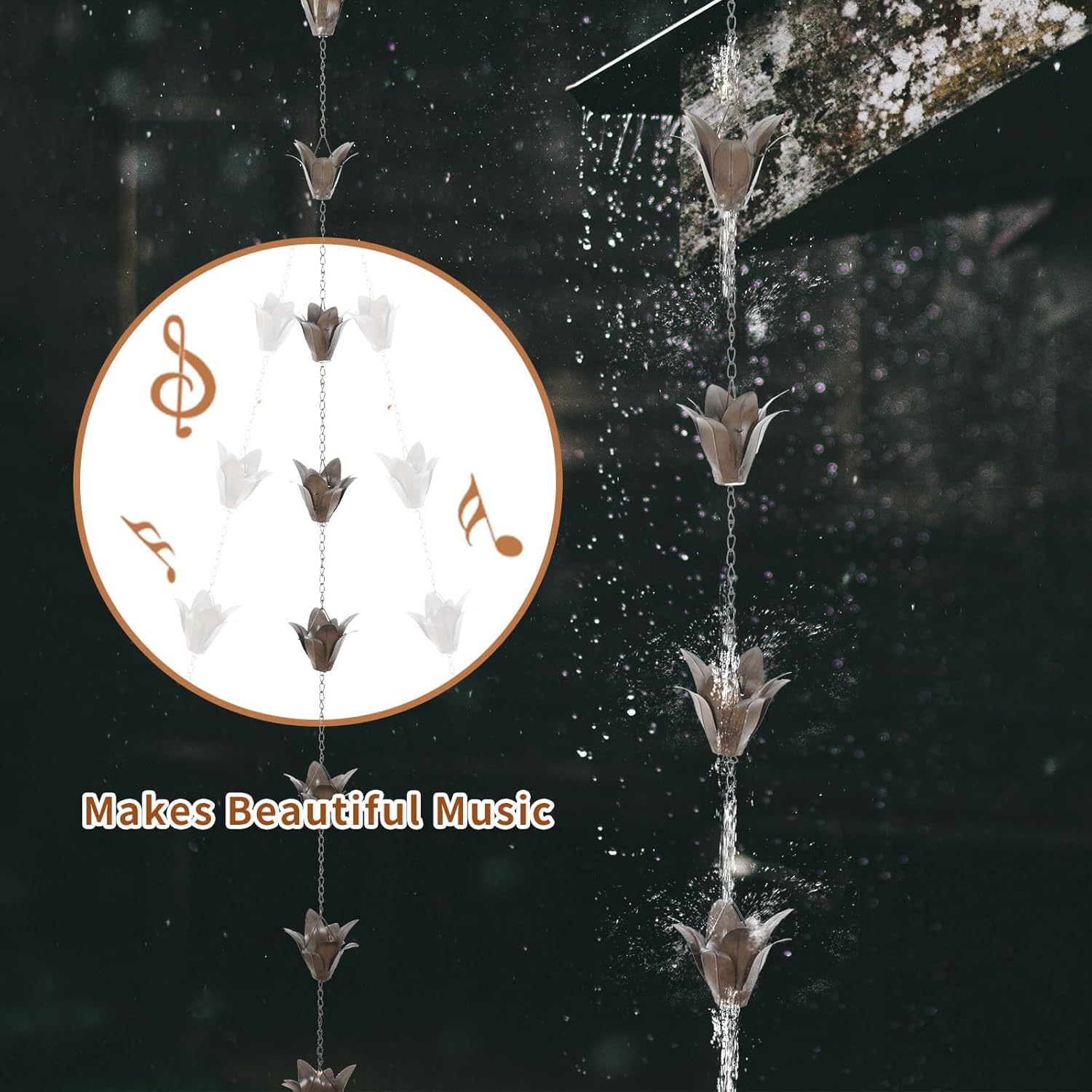 - Enchanting Rain Chain: Decorate Your House and Outdoor Garden with the Unique Rain Chain Replace Gutter Downspout & Divert Water Away from Home for Stunning Fountain Display, make gardens, courtyards, villas, etc., more beautiful
