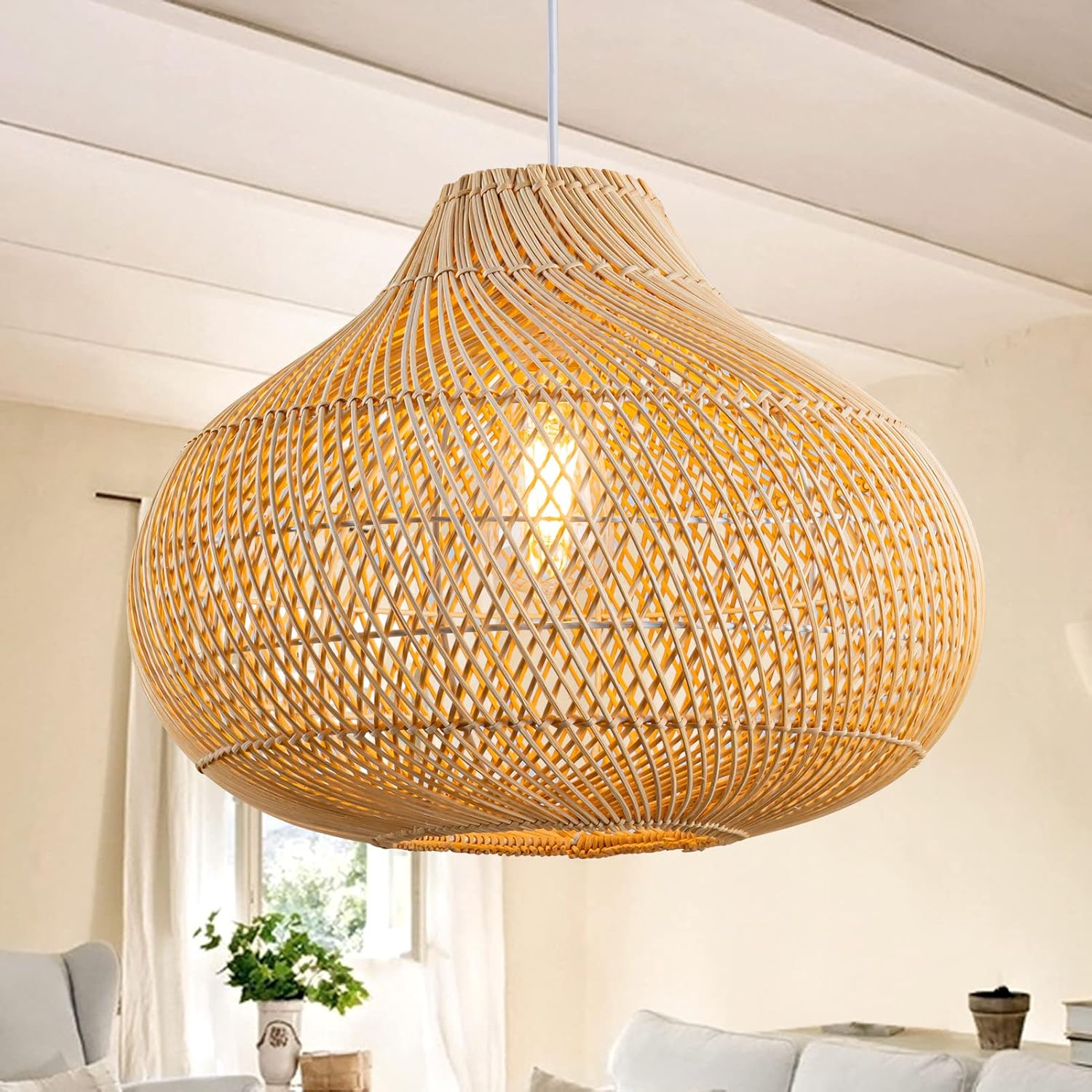 - Large Size & Widely Application - The large size of D 16.5" * H 12.5" makes this wicker pendant light ideal for farmhouse, kitchen, stairs, hallway, living room, bedroom, loft, nursery, corridor, restaurants, coffee, club, lounges, everywhere