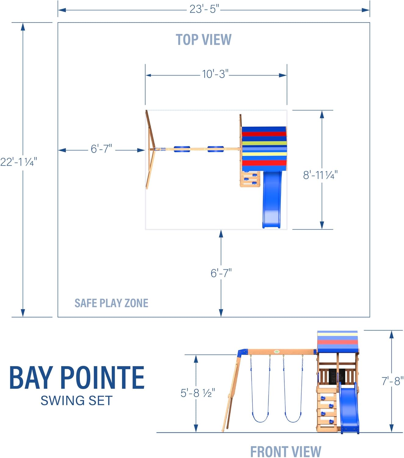 Backyard Discovery Bay Pointe Cedar Wood Swing Set with Wave Slide, Play Deck, Rock Wall Ladder, Belt Swings, Chalkboard, Canopy Roof, Outdoor Playset