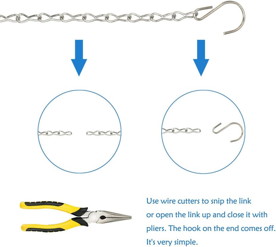 - ✅EASY TO WORK WITH: Adjustable Length, DIY plant hook, each hanging chain is equipped with hook and clip, you can shorten or extend or loop the chain to match your bird feeders and planters in different heights as needed. the small chain easy to install and remove