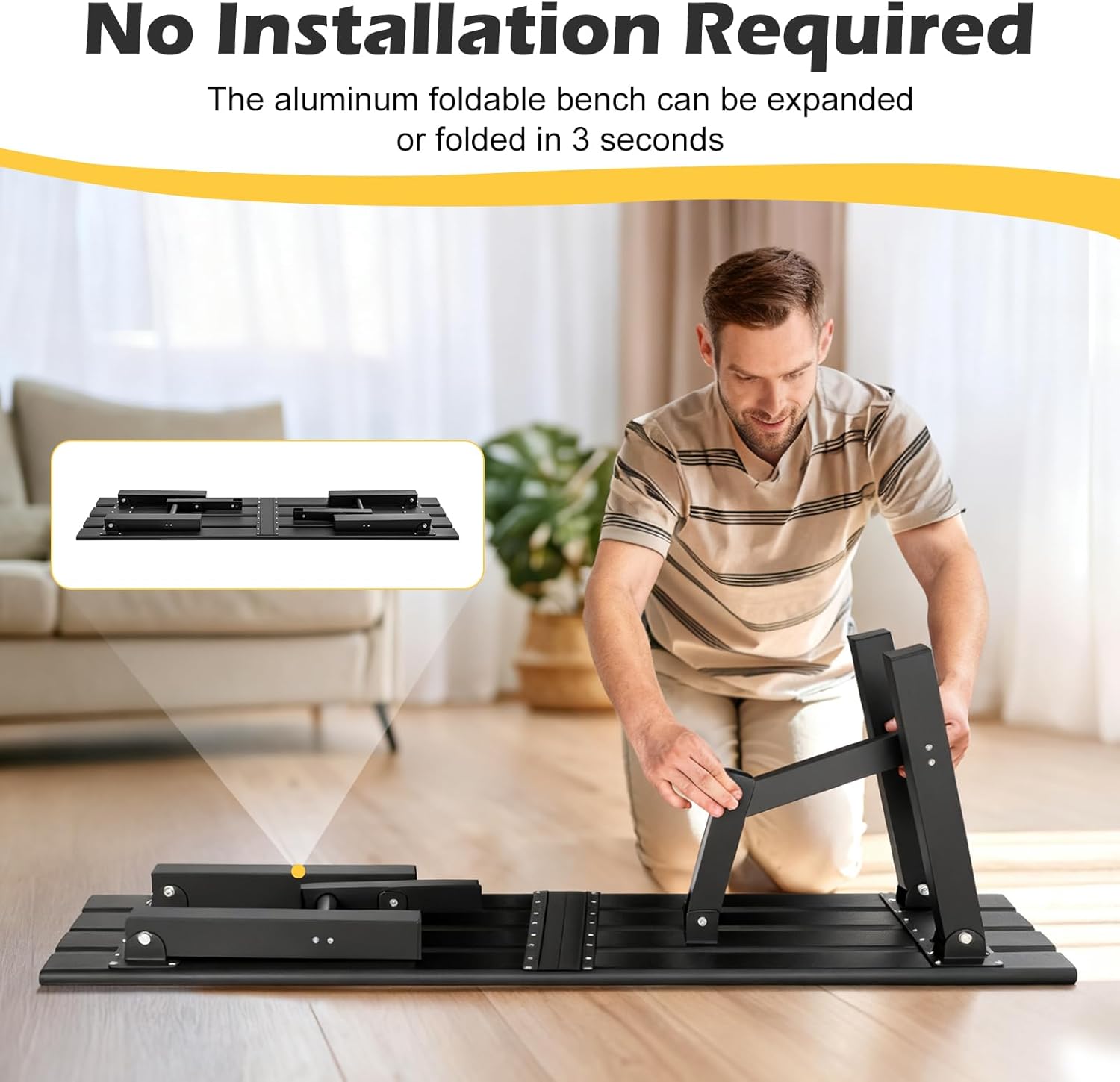 - Instant Setup in 3 Seconds: No assembly required. Enjoy immediate convenience! This aluminum small outdoor bench comes fully assembled and ready to use right out of the box. Simply unfold it and it's set up; fold it flat for compact storage. It’s the ultimate solution for quick, effortless seating.