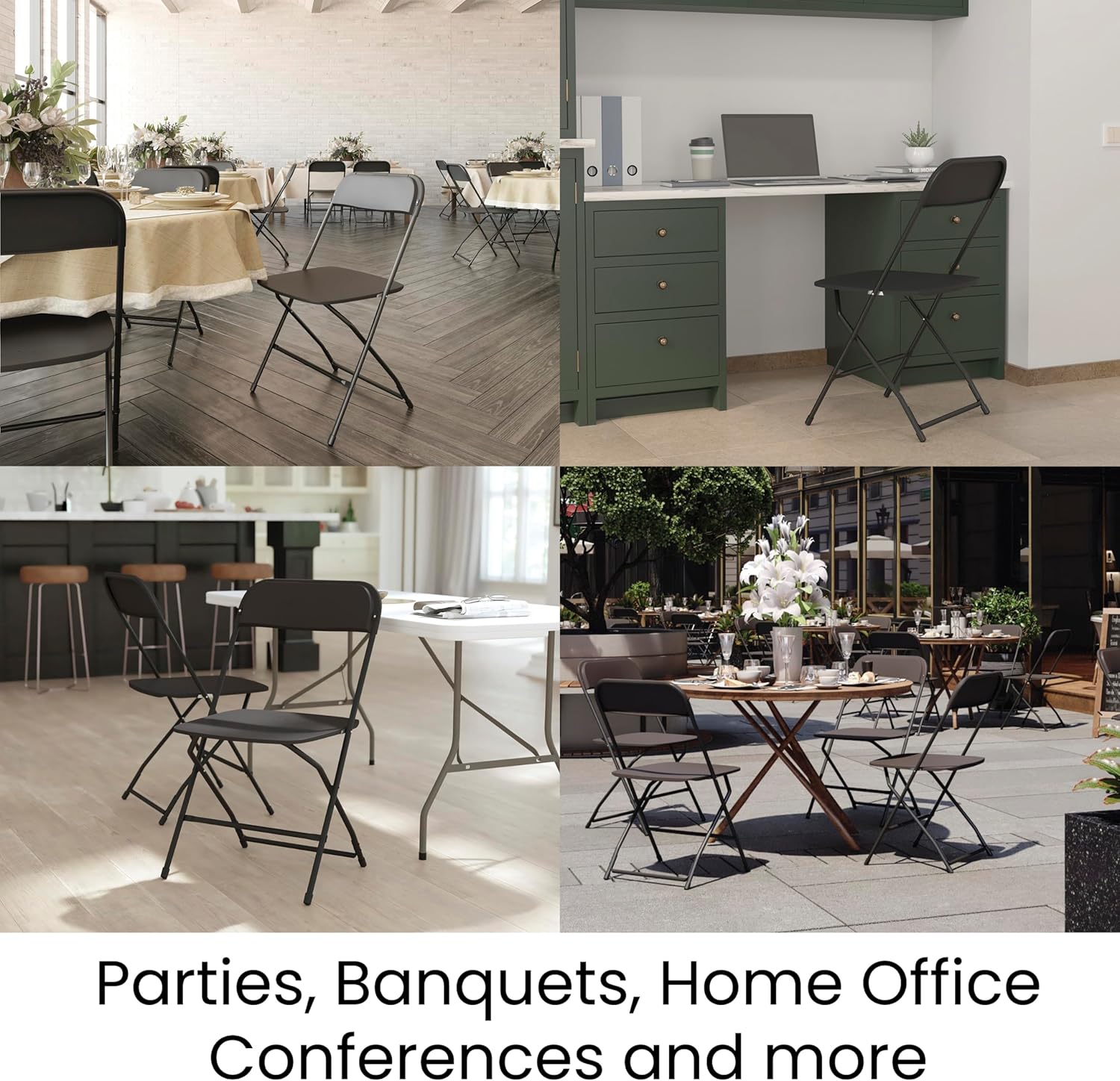- SET OF 4 FOLDING CHAIRS: Offers reliable, on-demand seating for commercial or home uses such as corporate events, game nights, school functions, weddings, barbecues, and other events or get-togethers