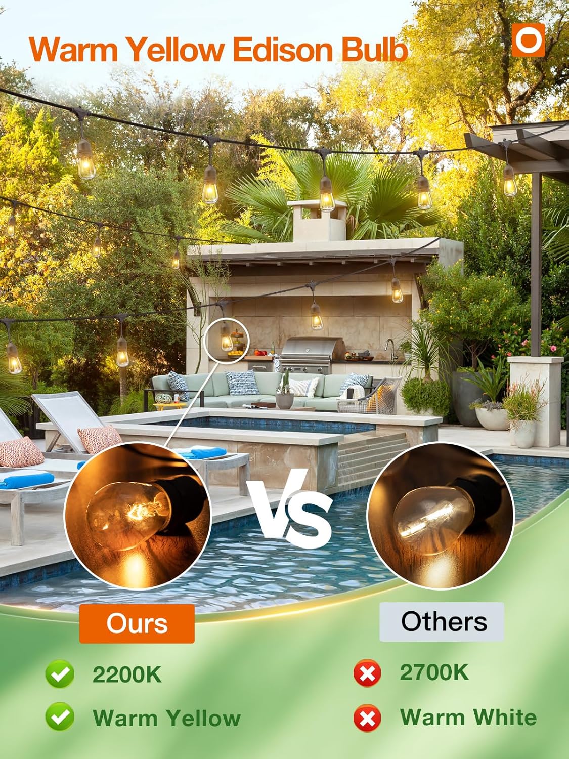 - [Dimmer Compatible to Set The Right Mood] For greater mood lighting flexibility and a more soft glow, a dimmer switch(not included) to create the ideal atmosphere for a birthday party, family reunion, or wedding reception. It adds flair to bistro deck porch patio garden backyard terrace pergola cafรฉ restaurant malls for wedding BBQ party banquets, also suitable for tree-lighting