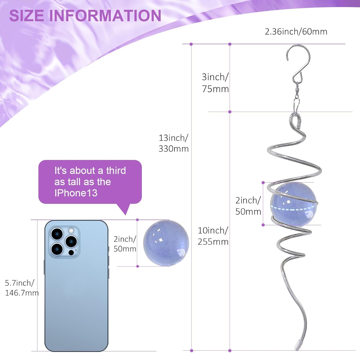 - 【 High Quality Spiral Tail Decor 】This stainless steel wind spinner spiral tail is made of 304 stainless steel wire, the colored ball is made of pure solid K9 crystal glass material. The crystal glass balls combined with stainless steel wire are colorful shining. Exceptionally resistant to inclement weather, the ball of the spiral tail will not fade even in direct sunlight. There are many colors to choose from for this decorative spiral wind-spinner to match any decor.