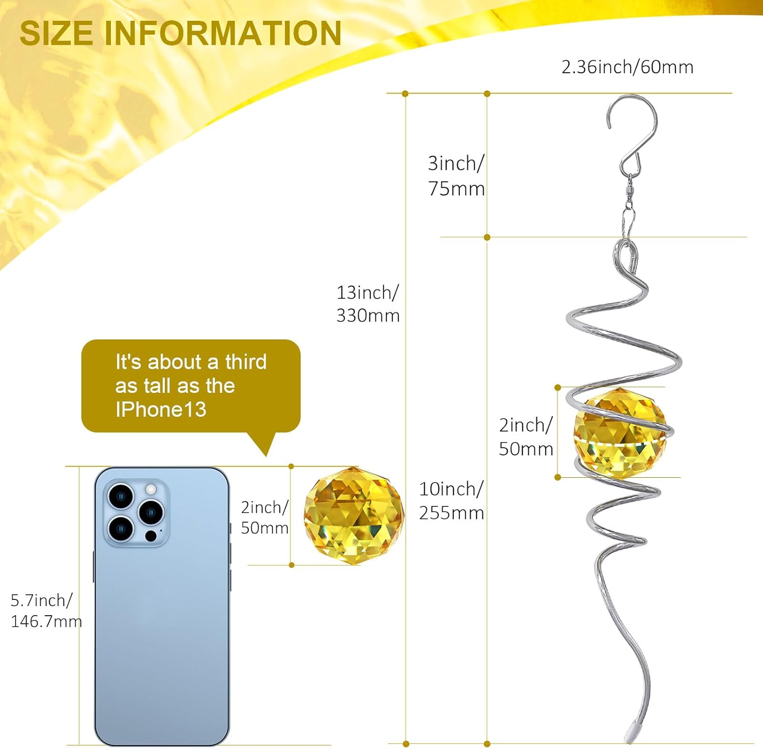 - 【 Meaningful Unique Gifts 】Golden Crystal symbolizes wealth and good fortune. The Gazing Ball Spiral Tail Wind Spinner came in a beautiful gift box that was easily giftable. This magic ball spiral tail is a wonderful gift that will be a hit as a birthday gift, Thanksgiving gift, Christmas gift, housewarming gift, garden gift, Decor gift, etc.. The wind spiral with crystal ball is a perfect gift for birthdays, Thanksgiving Day, Christmas, etc. and any you loved people ( family, friend, etc.).