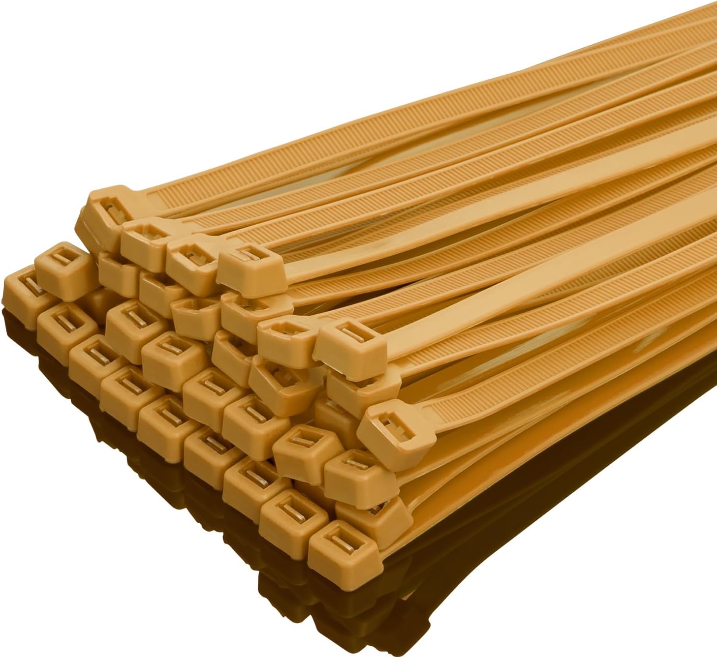 XINGO 14 Inch Gold Zip Ties Heavy Duty 100 Pack, 120 LBS Tensile Strength, Premium Nylon Cable Wire Ties, Self-locking Plastic Ties for Indoor and Outdoor Use