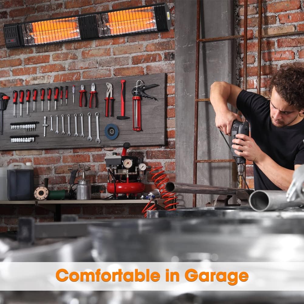 - 3 SECONDS INSTANT HEAT - This infrared patio heater with carbon fiber heating tube delivers instant powerful heat, only warming people and solid objects directly and unaffected by wind, providing you with maximum comfort for your winter activity outdoor, perfect addition to your patio, deck, garage or workspace