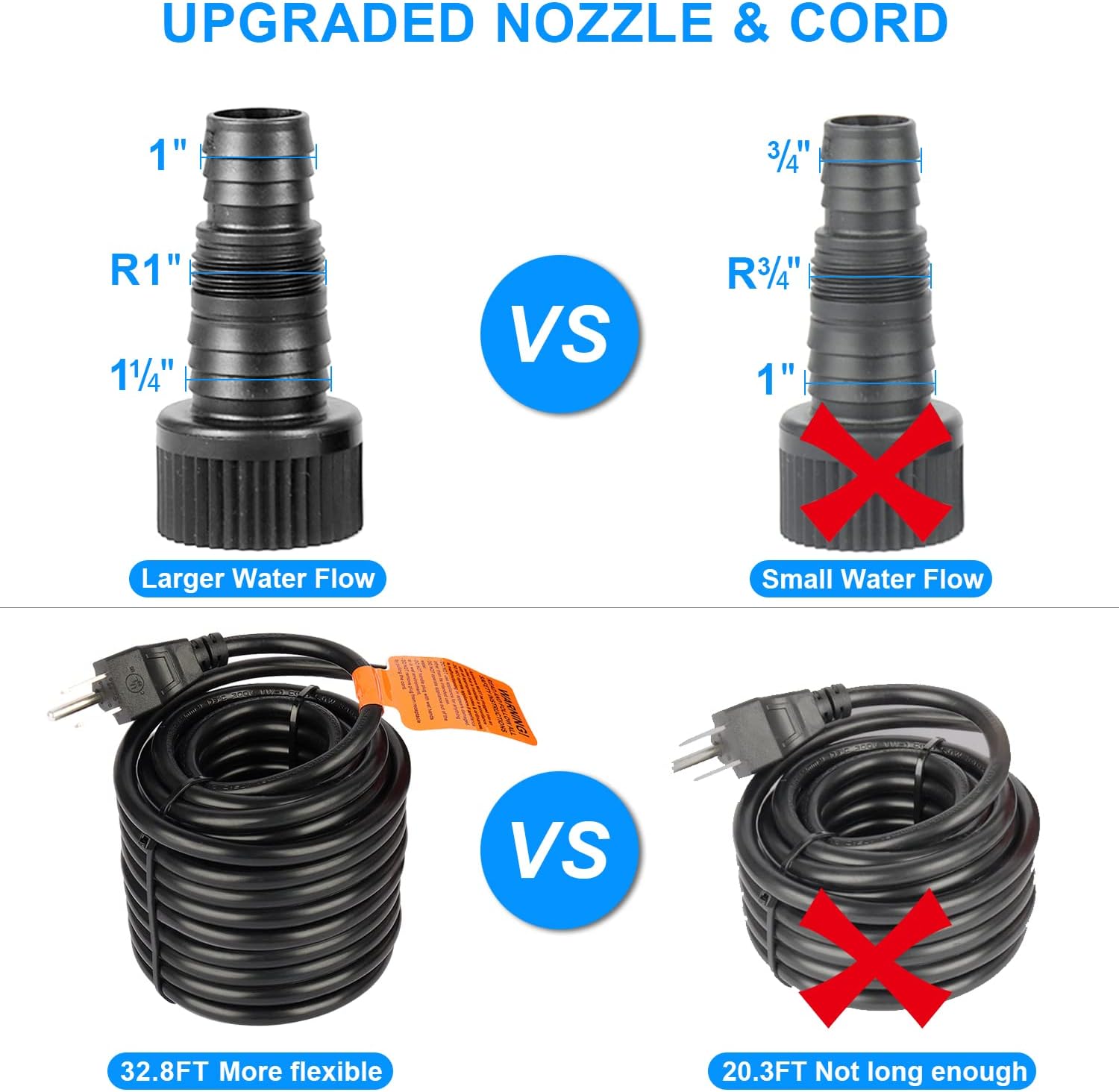 - 【Cuter Water Flow】-AS CLEAN AS “ SPIRIT LIVES IN US"-1. Smarter & QUIET pond pump, as "In quietness is your strength": 1800-gph pond water-fall pump submersible outdoor is very powerful with 1800gph high flow and 14 feet high lift. 2.It can move a large volume of water to build water flow of waterfall or fountain in your yard. 3.although pond water-fall pump submersible outdoor is powerful, doesn’t make much noise at all, when pumping except for the soothing sound of splashing water. Why not try?